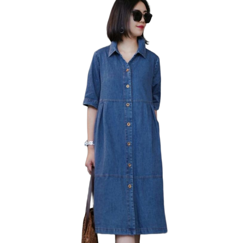 秋のカジュアルシーンに映えるきれいめフロントボタンデニムシャツワンピース服
