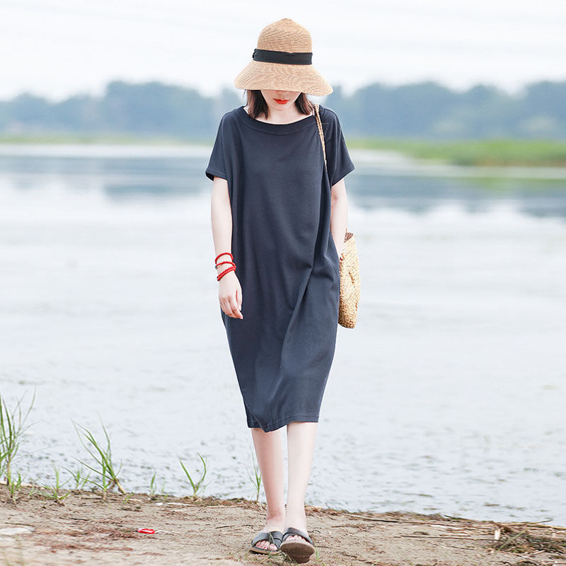 骨格ウェーブに適したきれいめカジュアルゆったり半袖マキシワンピース
