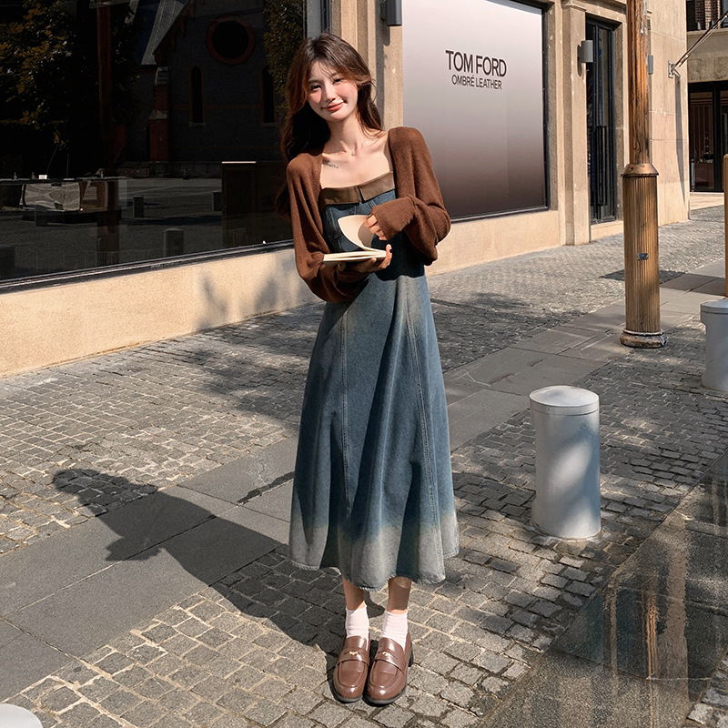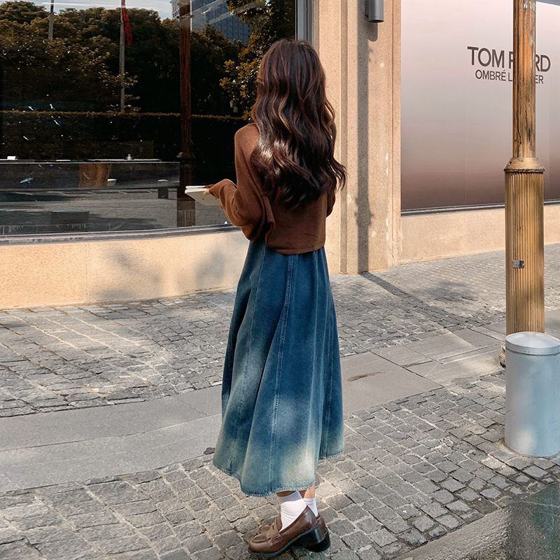 裾に向かって美しいグラデーションが施された、女性らしいシルエットのデニムワンピースです。