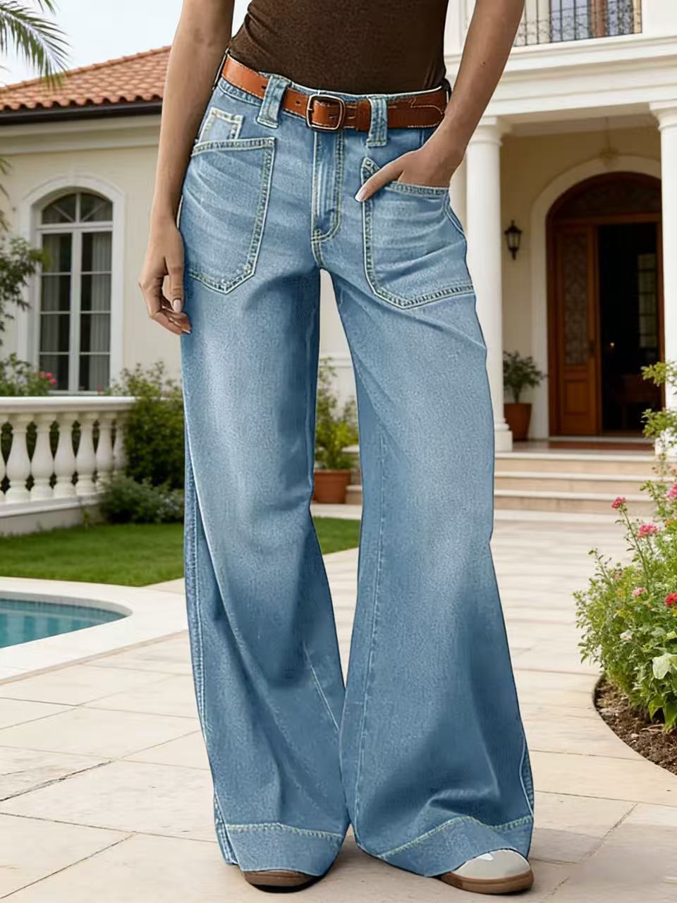 きれいめカジュアルな着こなしを叶える、ハイウエストデザインのワイドフレアデニムです。