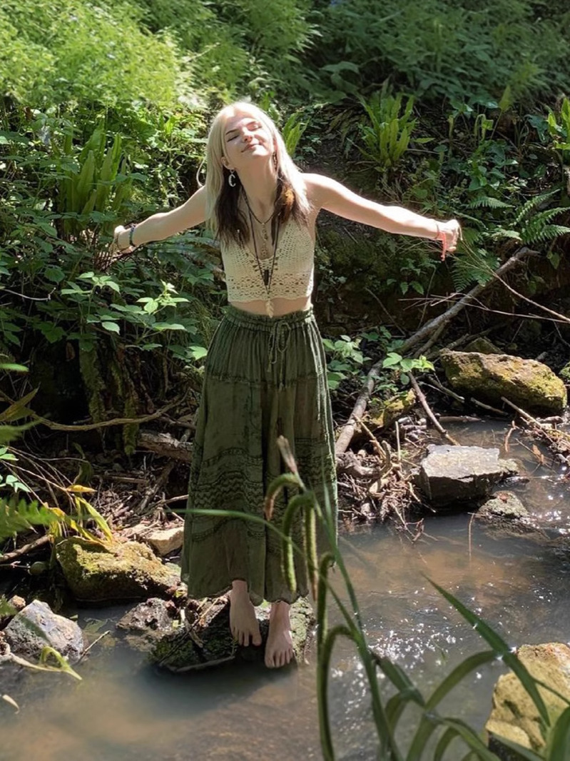 繊細な刺繍とティアードデザインが動くたびに揺れて、女性らしい雰囲気を演出します。