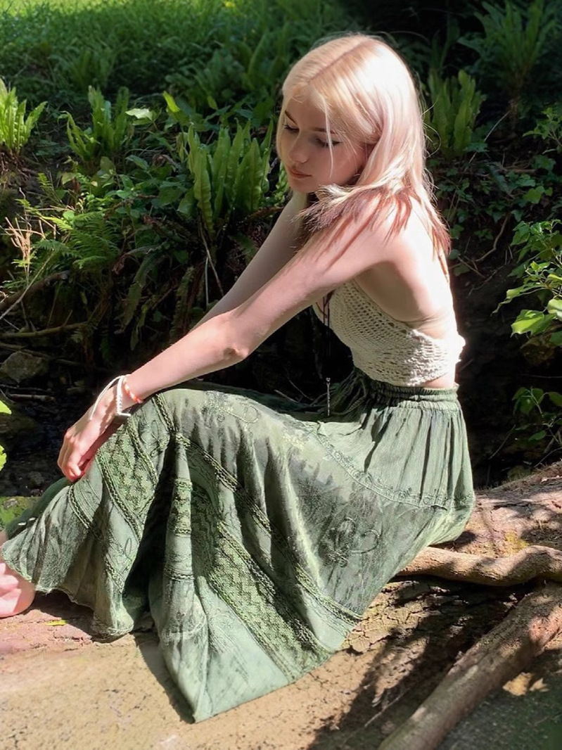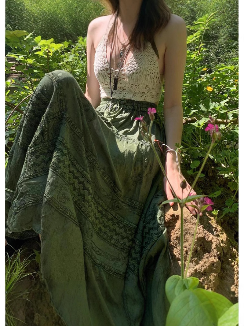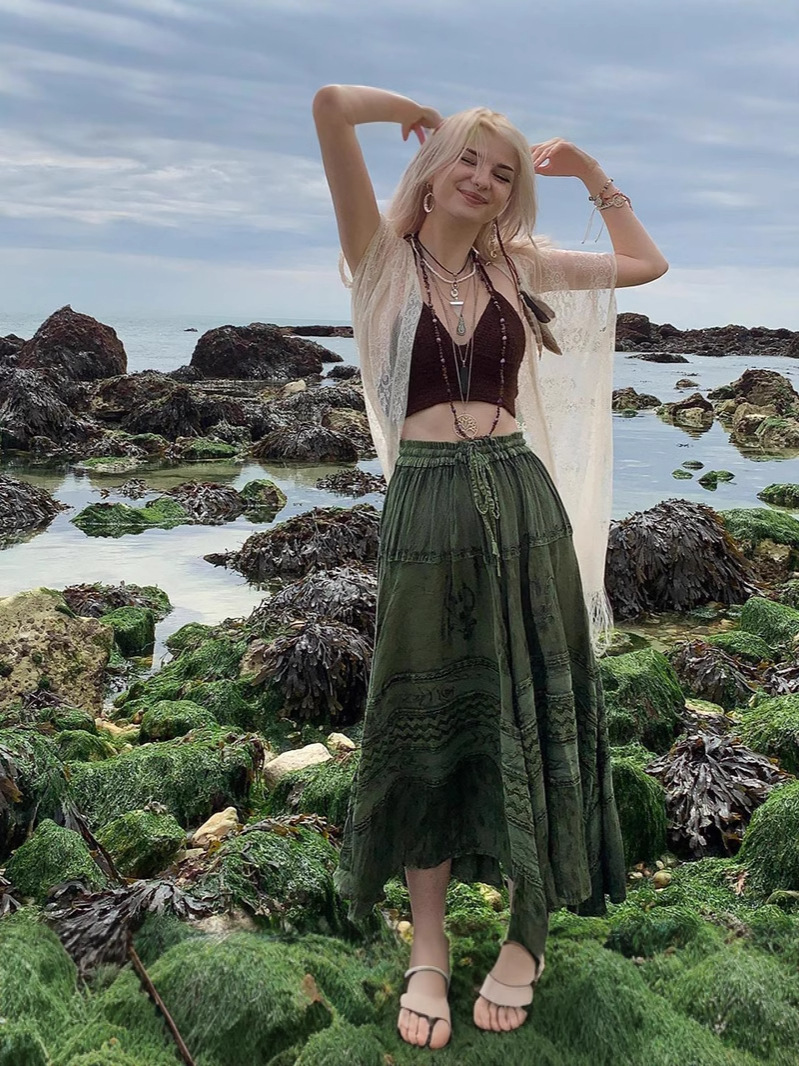 きれいめカジュアルに取り入れたいエスニックテイストのロングスカートです。