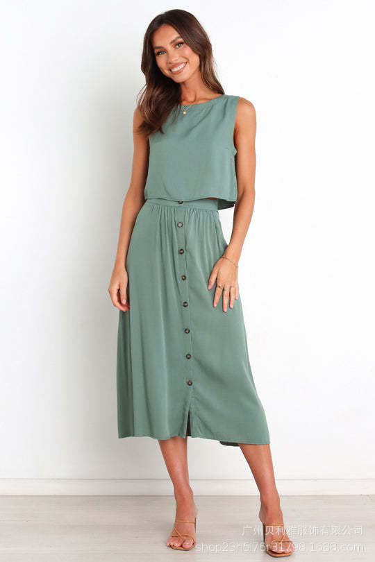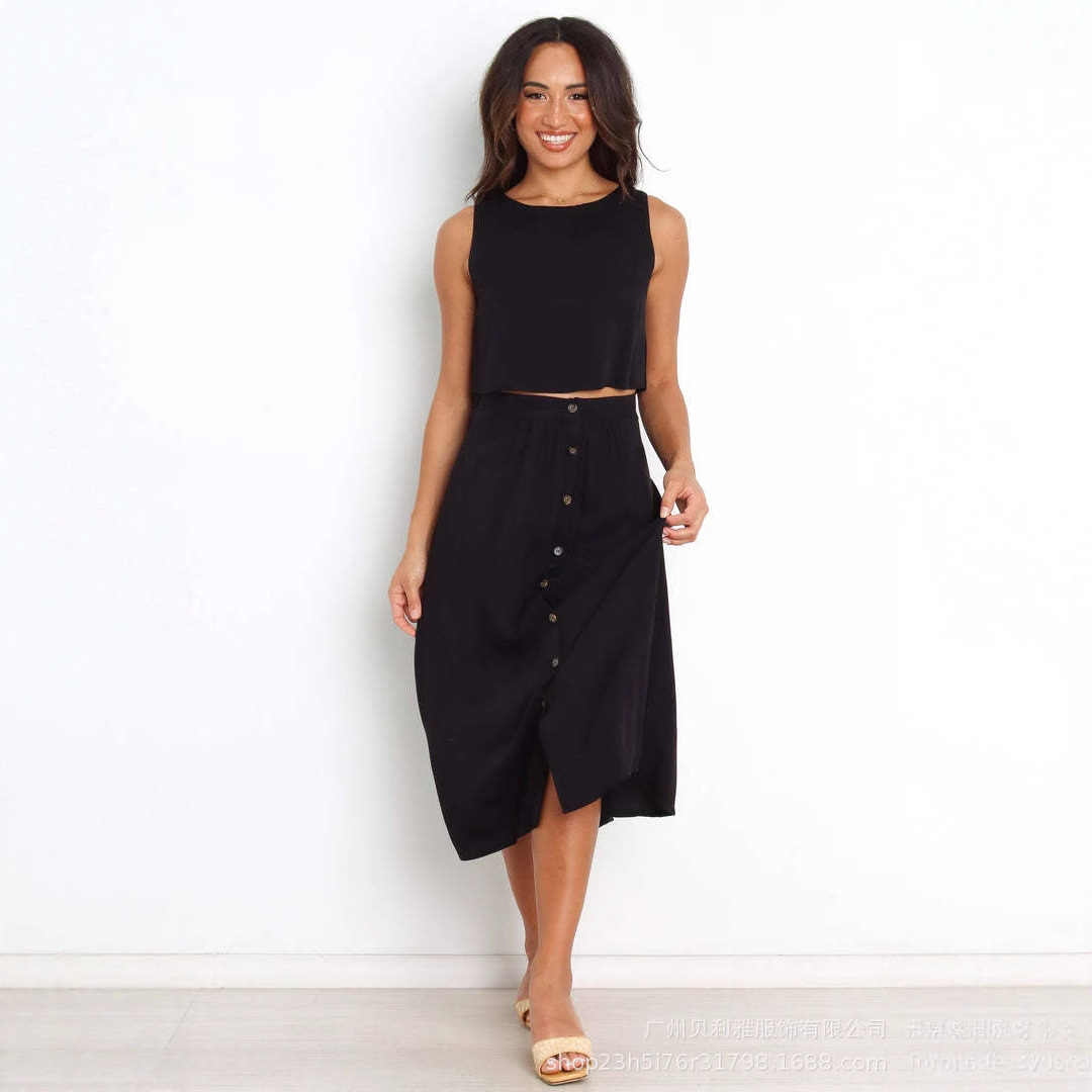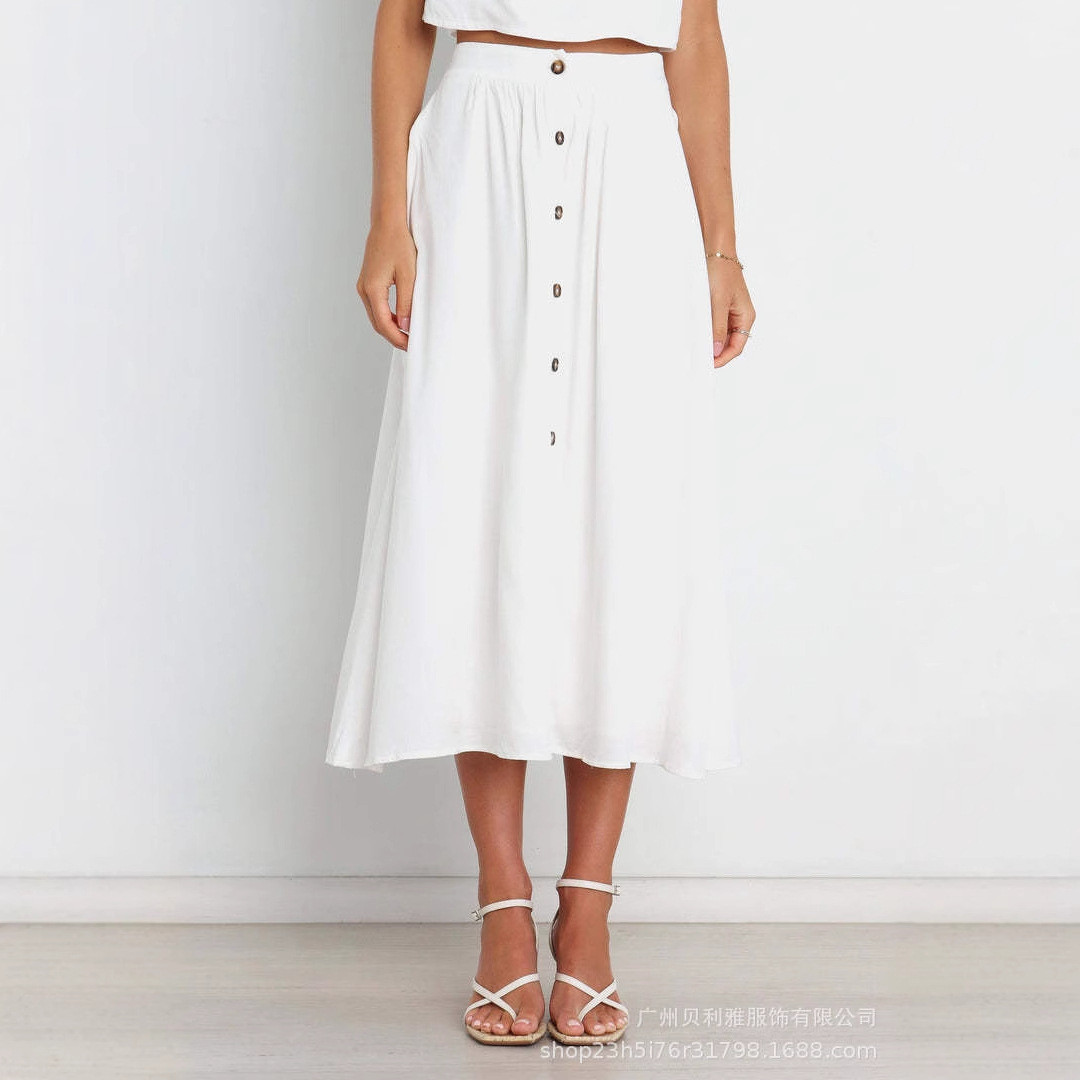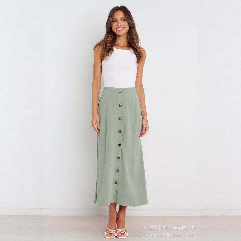 フロントに並んだボタンがアクセントになった上品なミディ丈スカートです。