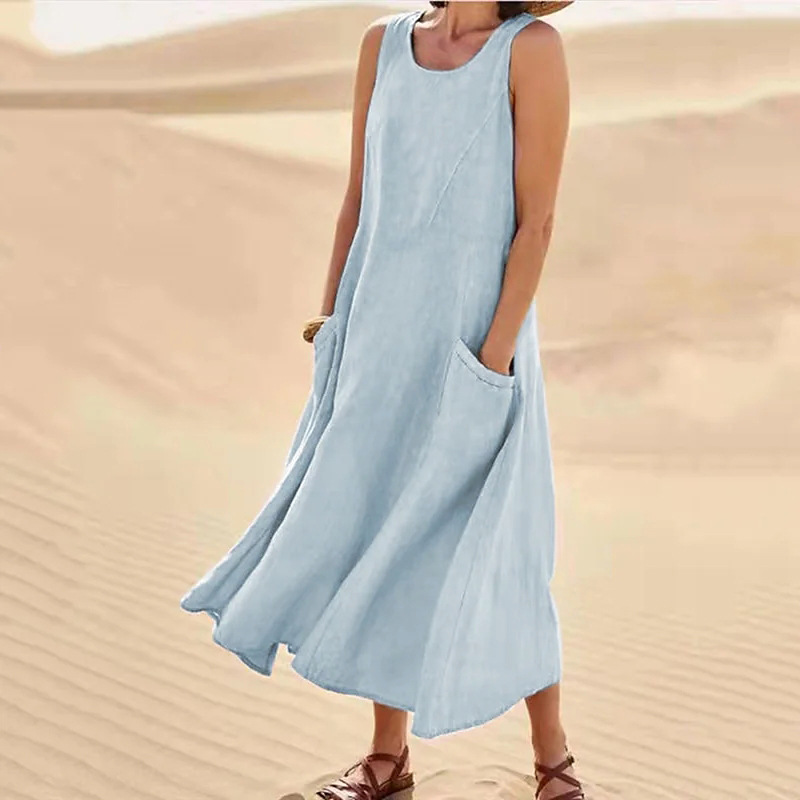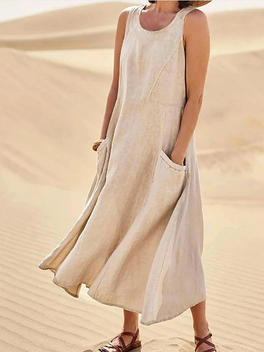 リラックス感のあるシルエットが魅力のノースリーブワンピースです。