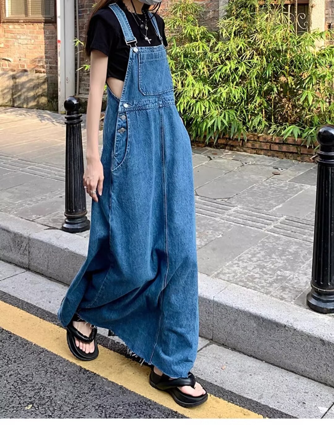 サロペット風のデザインで、一枚でおしゃれに決まる優れもの。