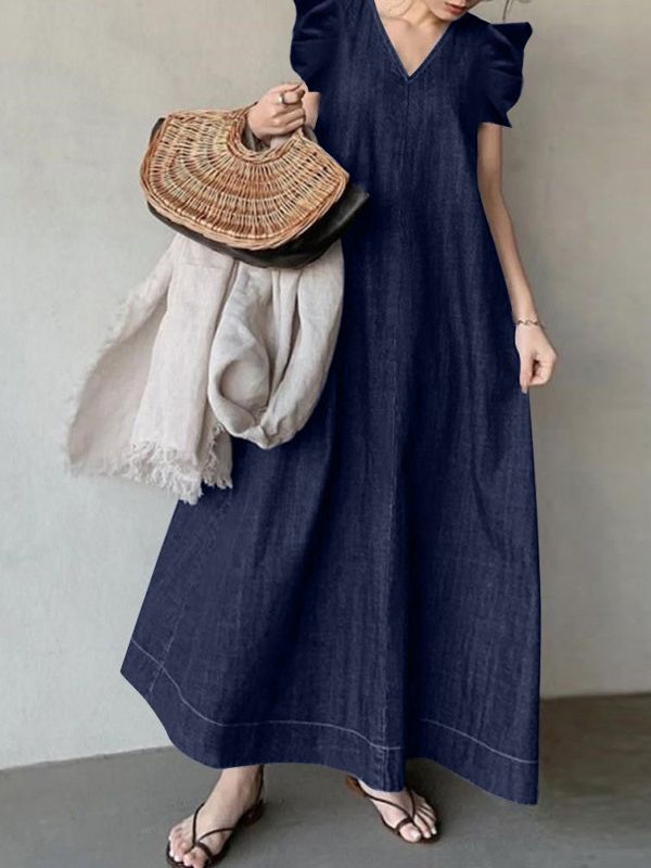 ふんわりとしたパフスリーブと上品な襟元が特徴のデニムワンピースです。