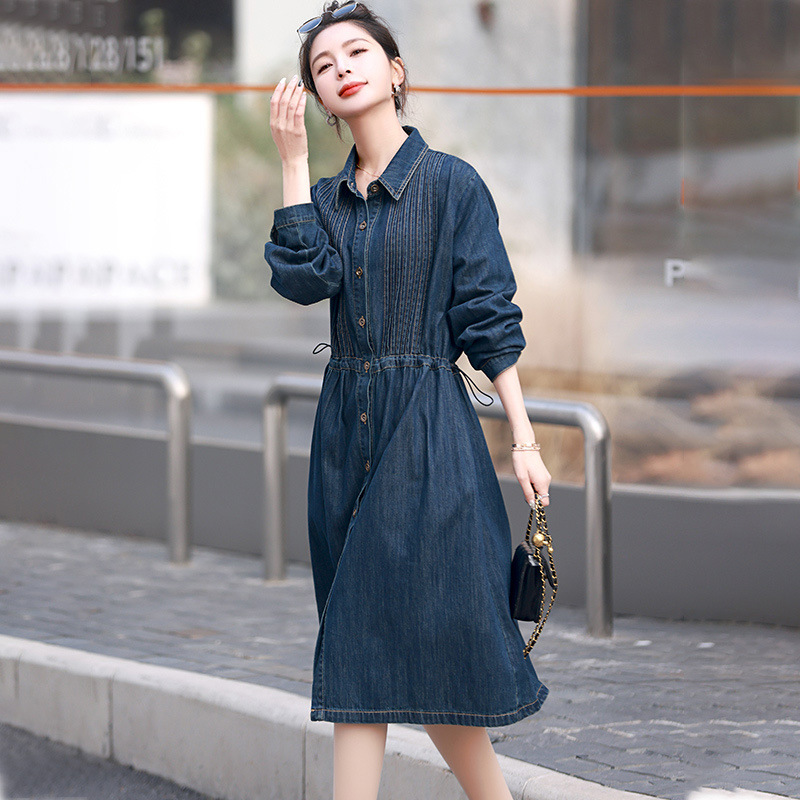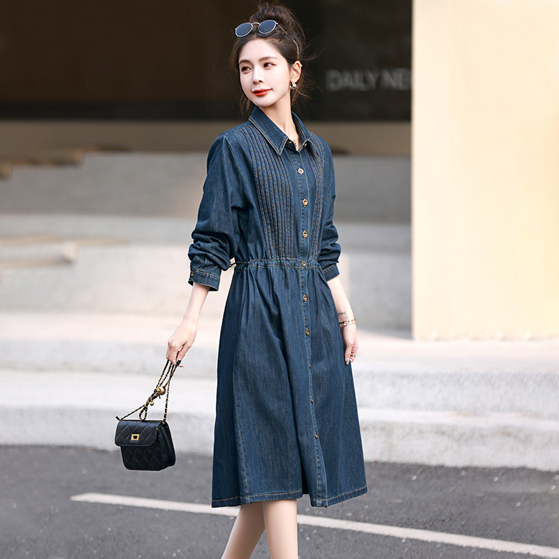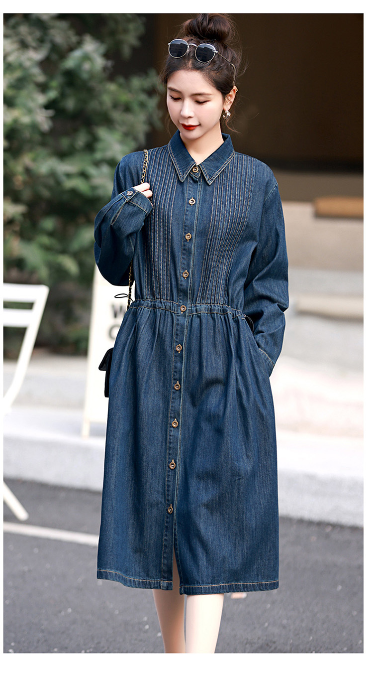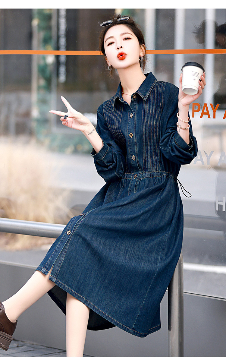 上品なピンタックデザインが胸元を華やかに彩るシャツ型のワンピースです。