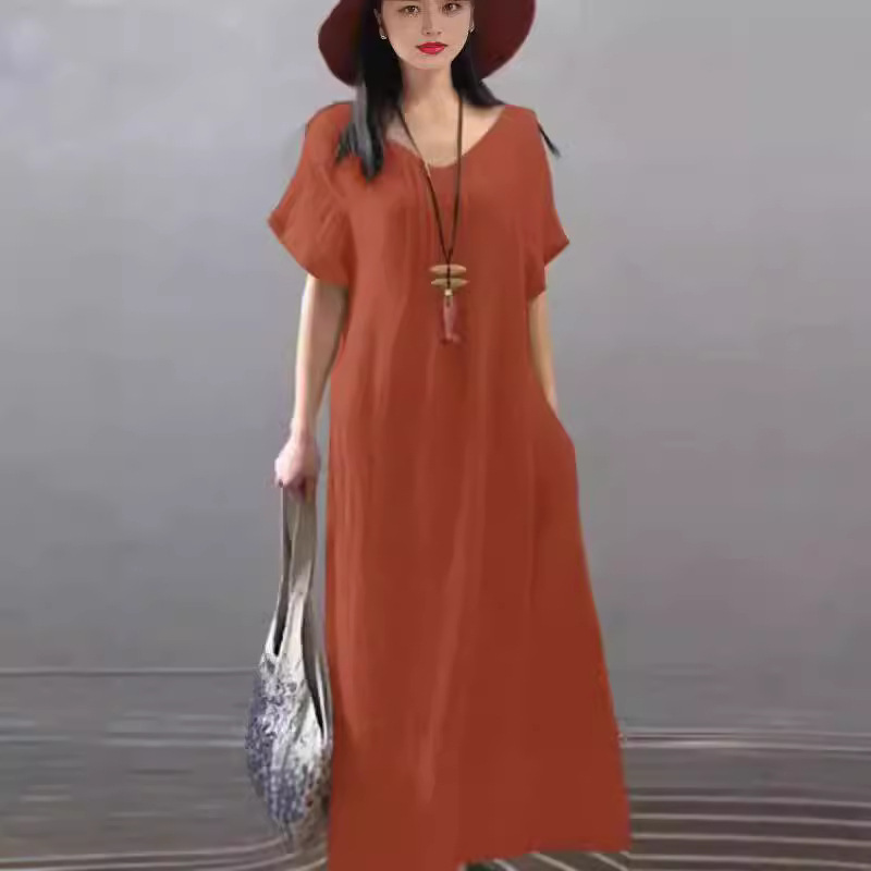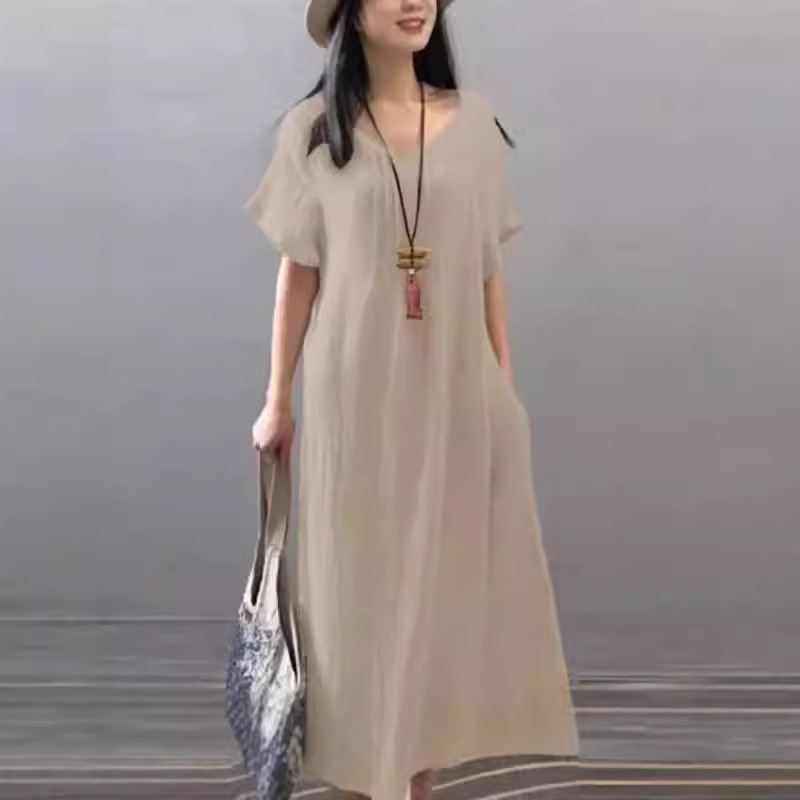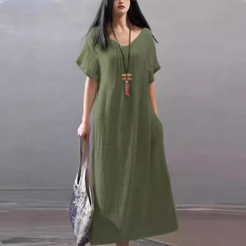 リラックス感のあるゆったりとしたシルエットが魅力のマキシ丈ワンピースです。