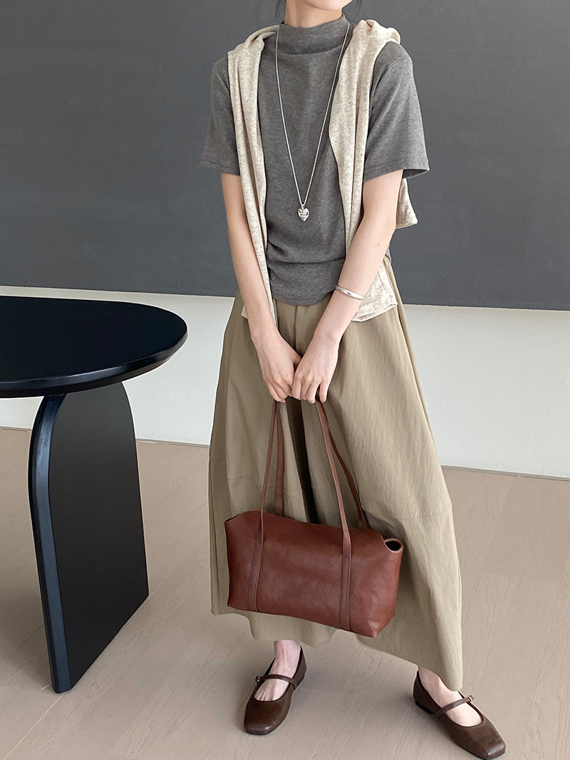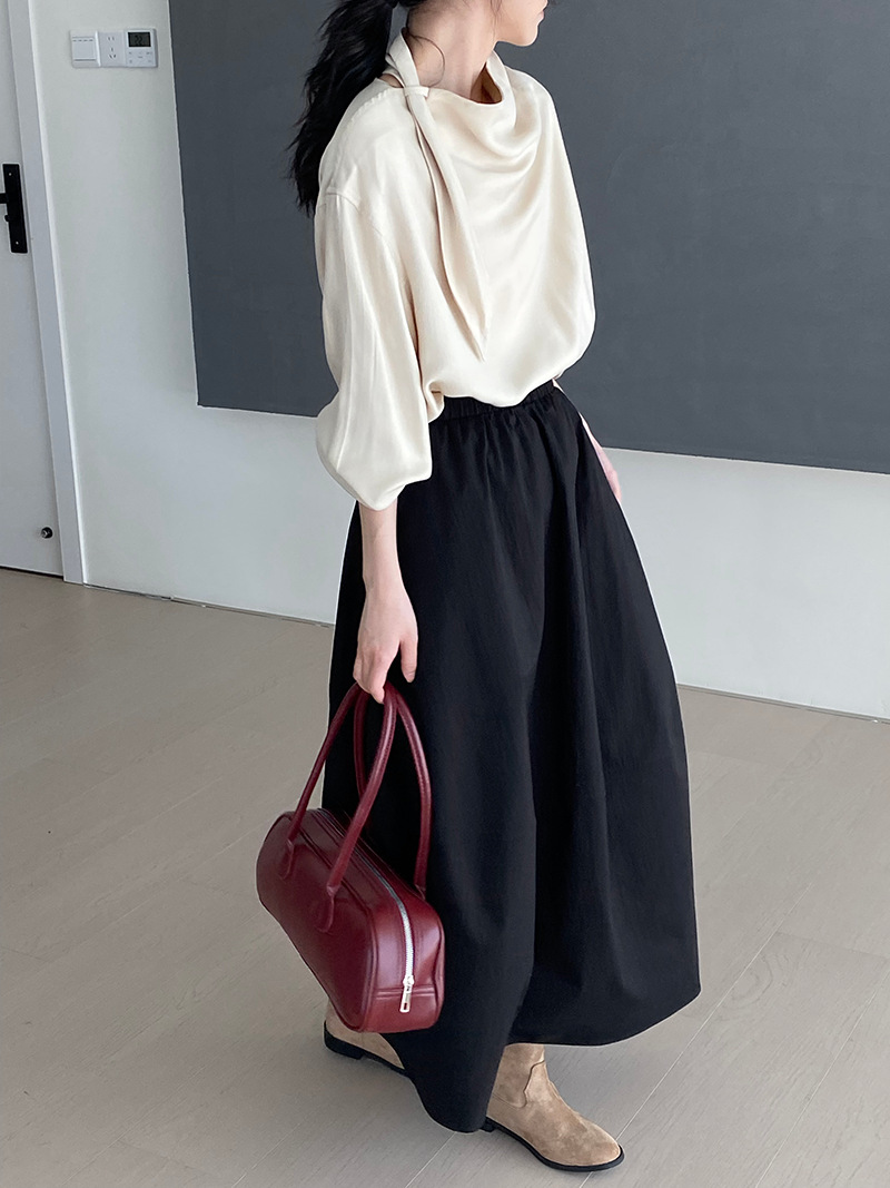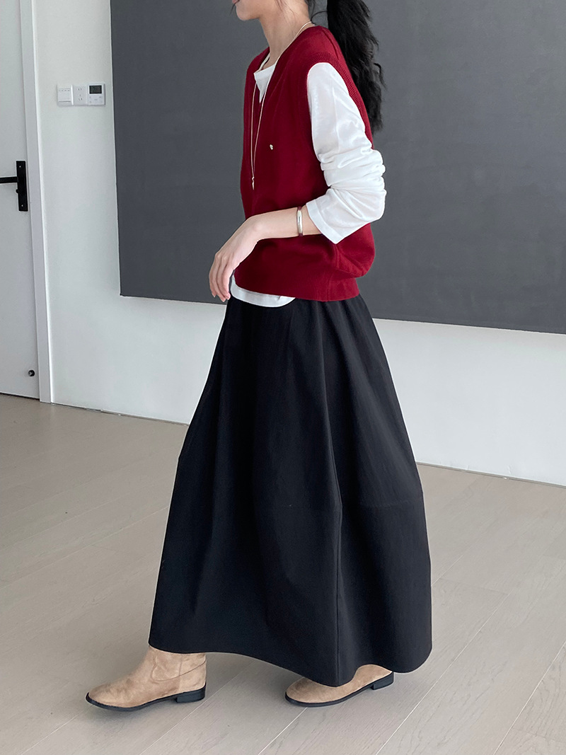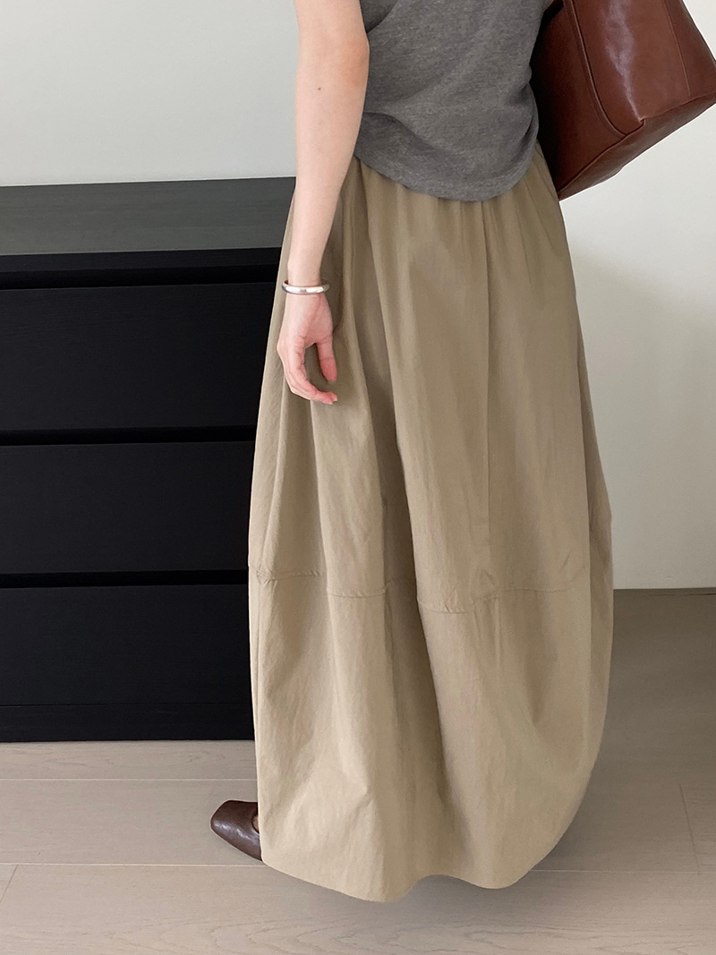 上品な落ち感と程よいボリューム感が魅力のロング丈スカートです。