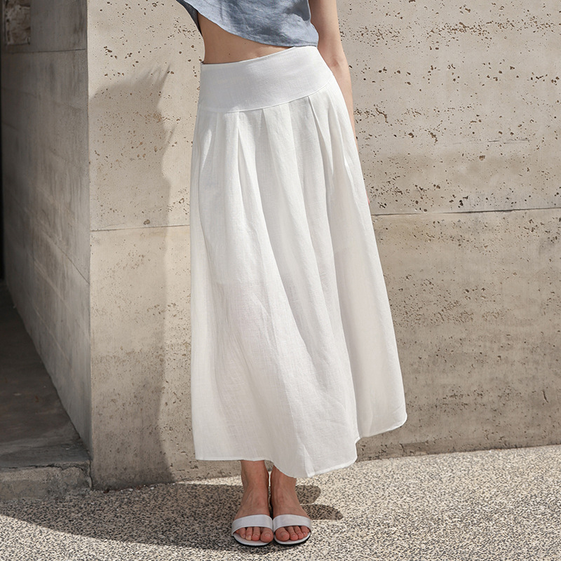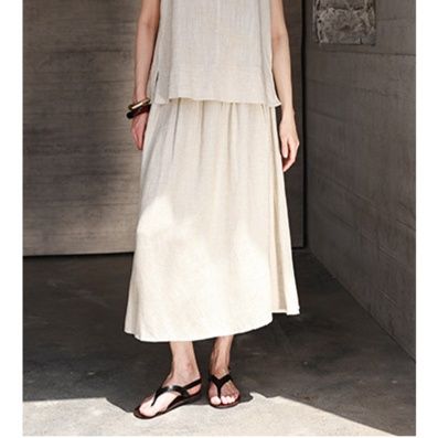 ナチュラルな風合いのリネン混素材を使用した上品なミディ丈スカートです。