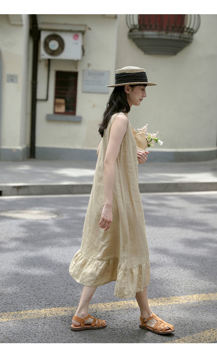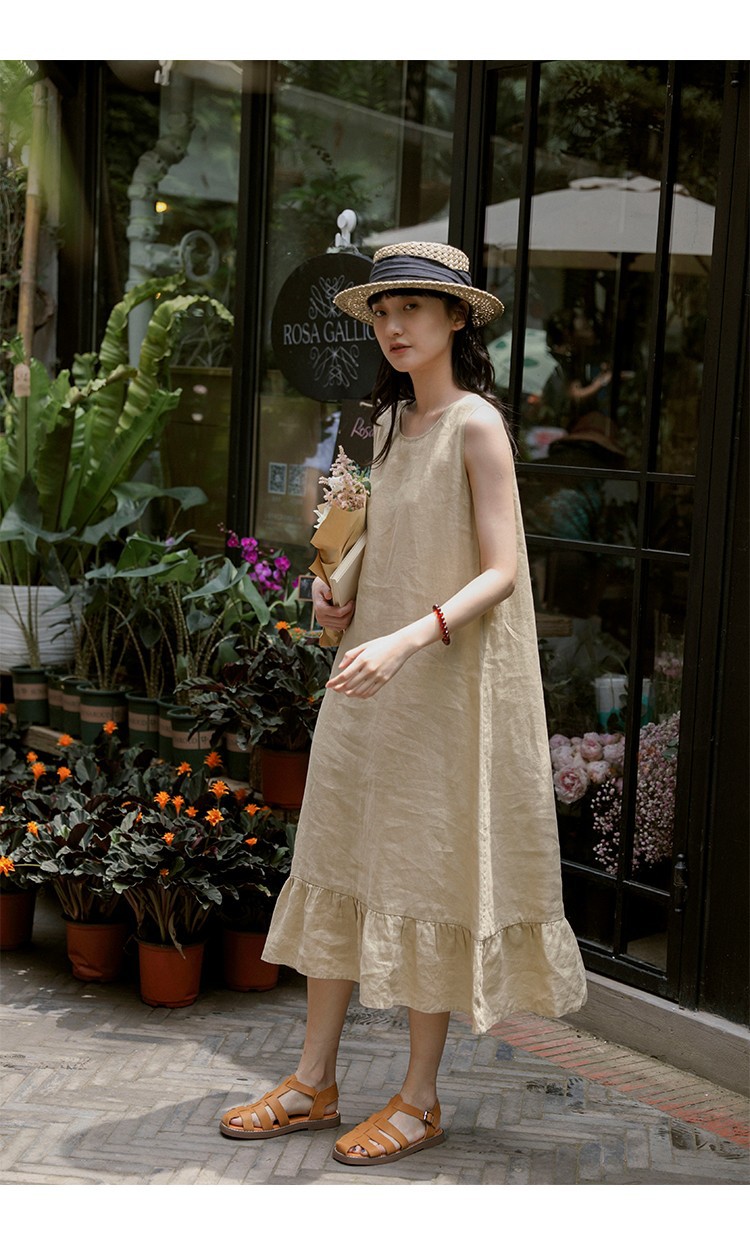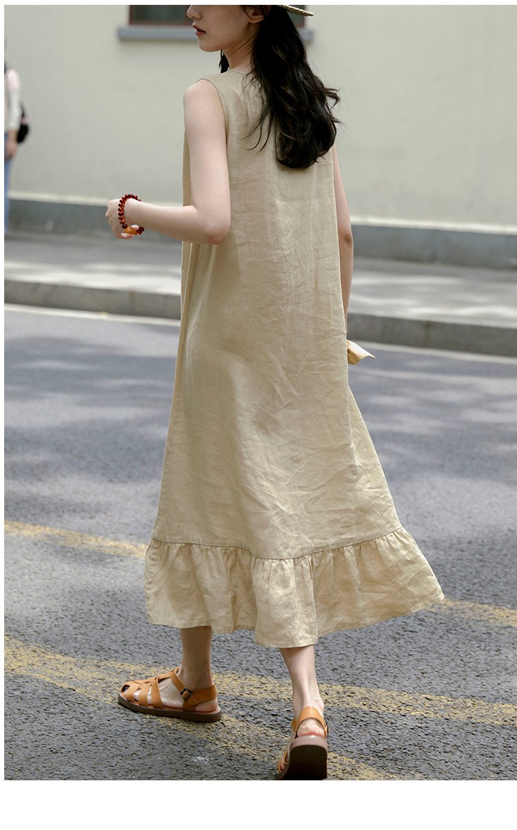 ナチュラルなリネン混素材が心地よいノースリーブワンピースです。