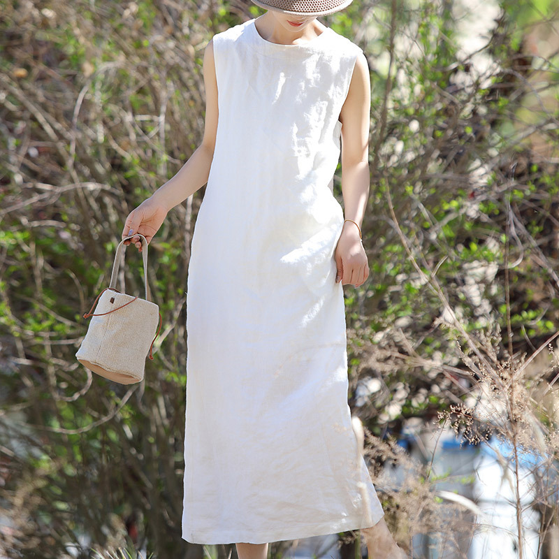 涼しげなノースリーブデザインで夏のお出かけにぴったりなロング丈のワンピースです。