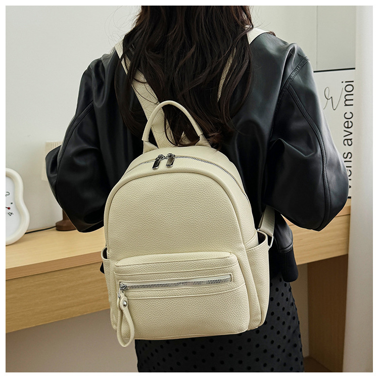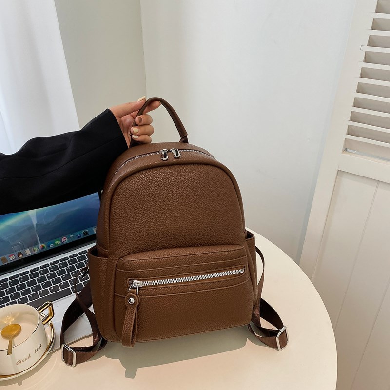 コンパクトながら収納力に優れ、前面のファスナーポケットで小物の整理も便利です。