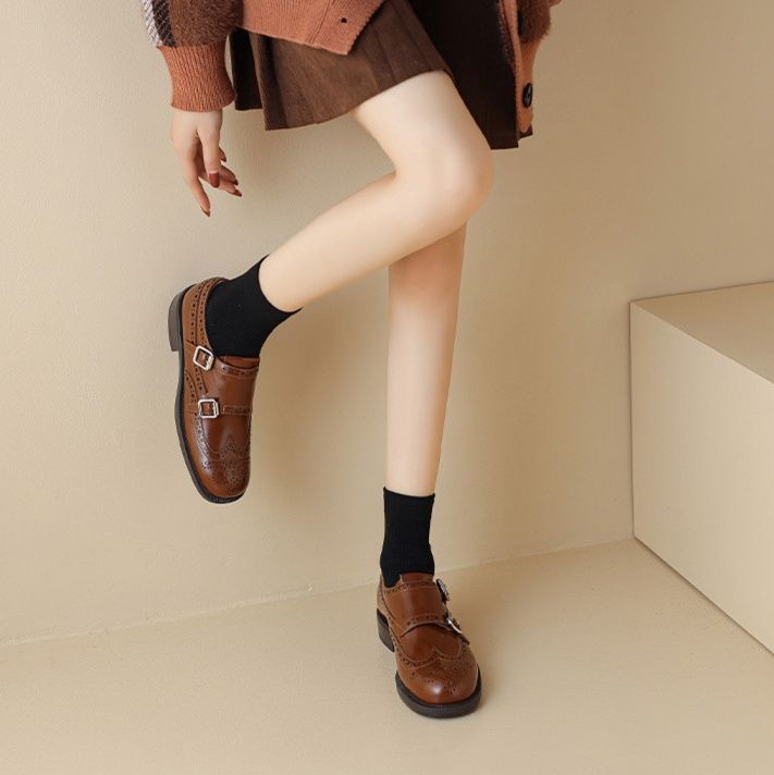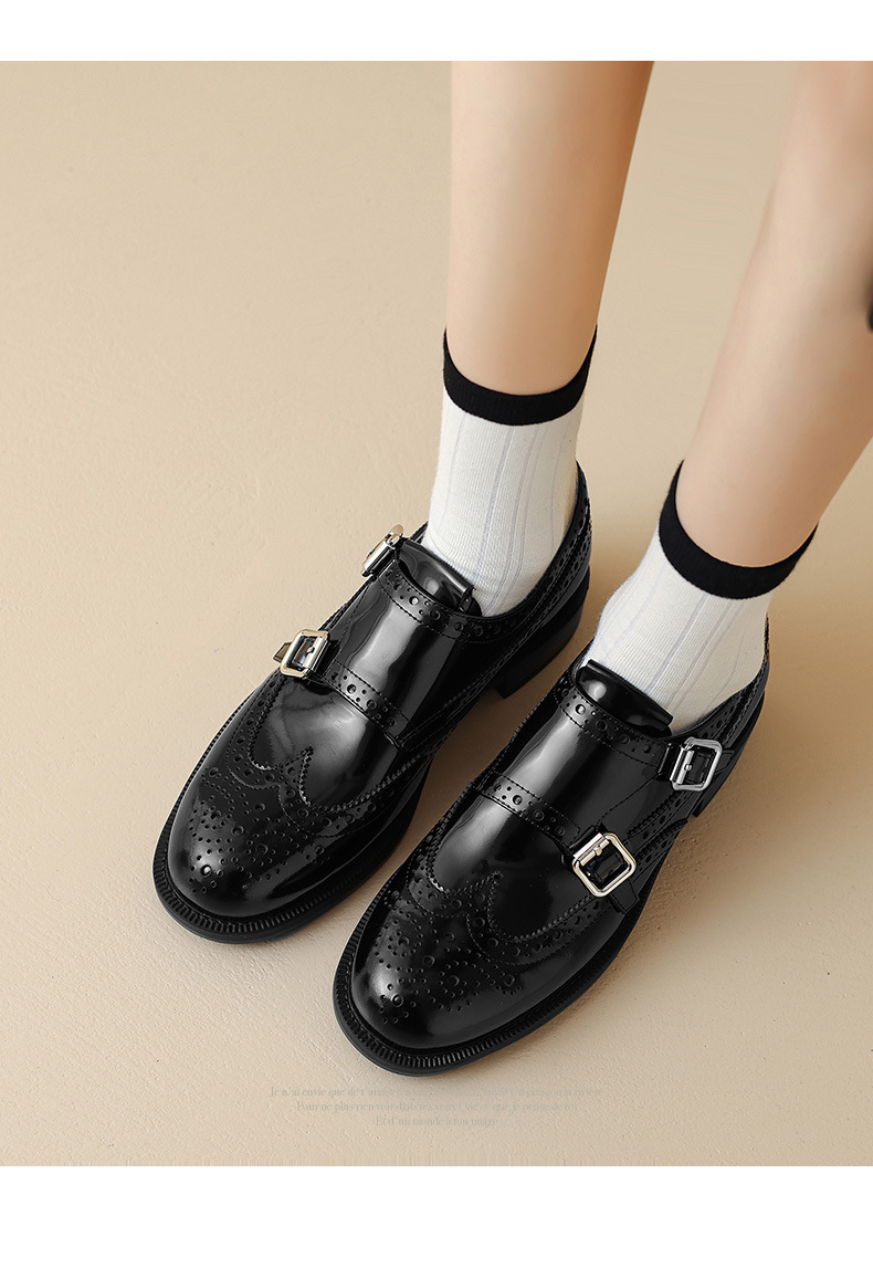 伝統的な穴飾りと美しい曲線が織りなすエレガントなデザインで知的な雰囲気を演出。
