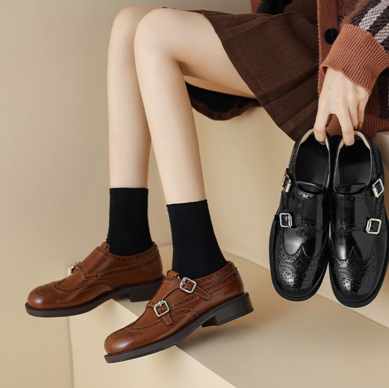 クラシカルなウイングチップデザインに二本のストラップを施した、きれいめカジュアルスタイルにぴったりな靴です。