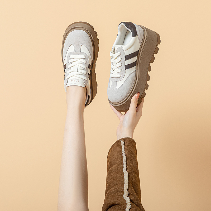 きれいめカジュアルなスタイルを格上げする厚底スニーカー。
