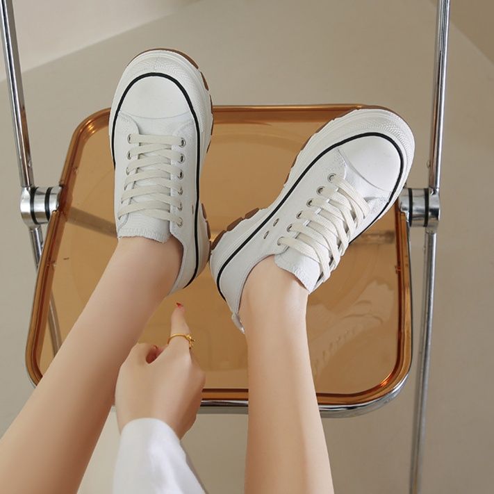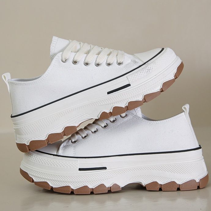 クラシックなキャンバス地を使用した厚底デザインのスニーカー。