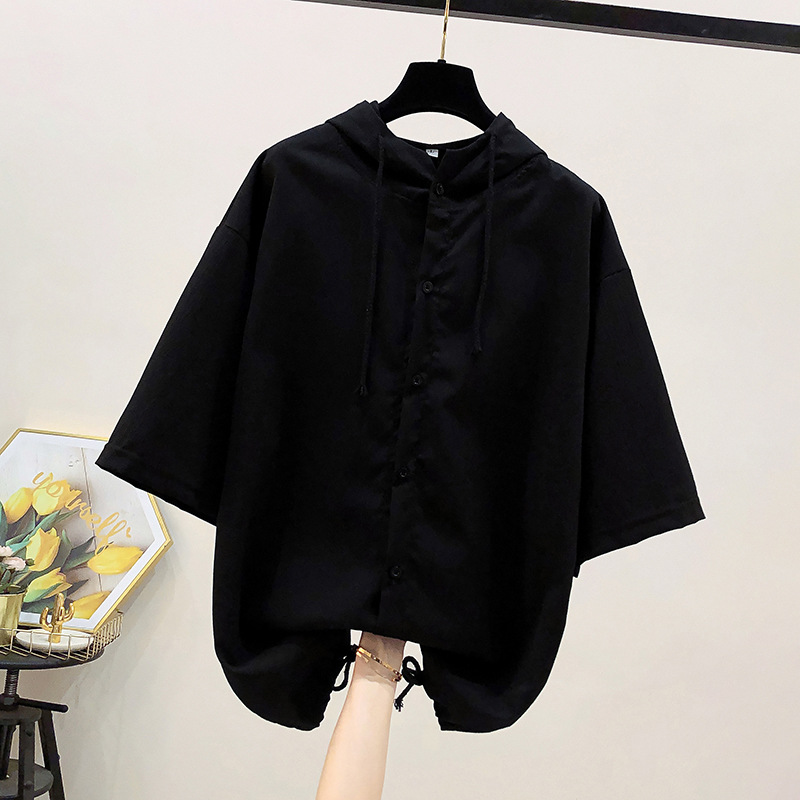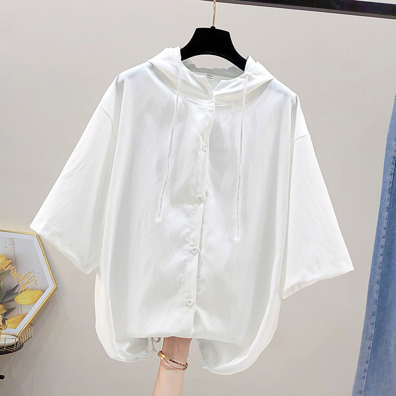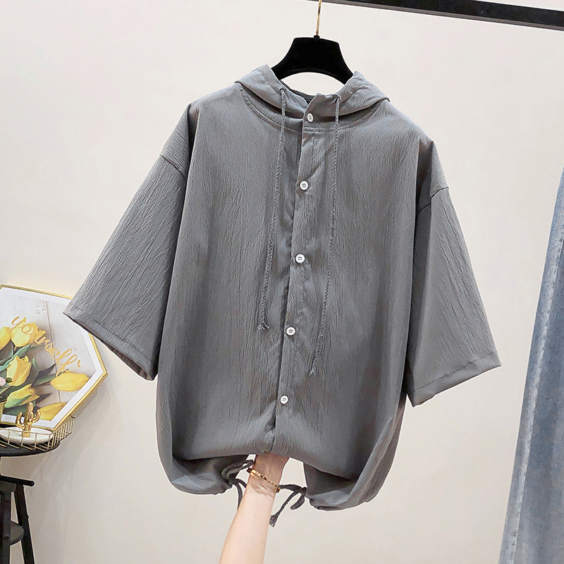 きれいめカジュアルなスタイルを叶える、五分袖のシャツパーカーです。