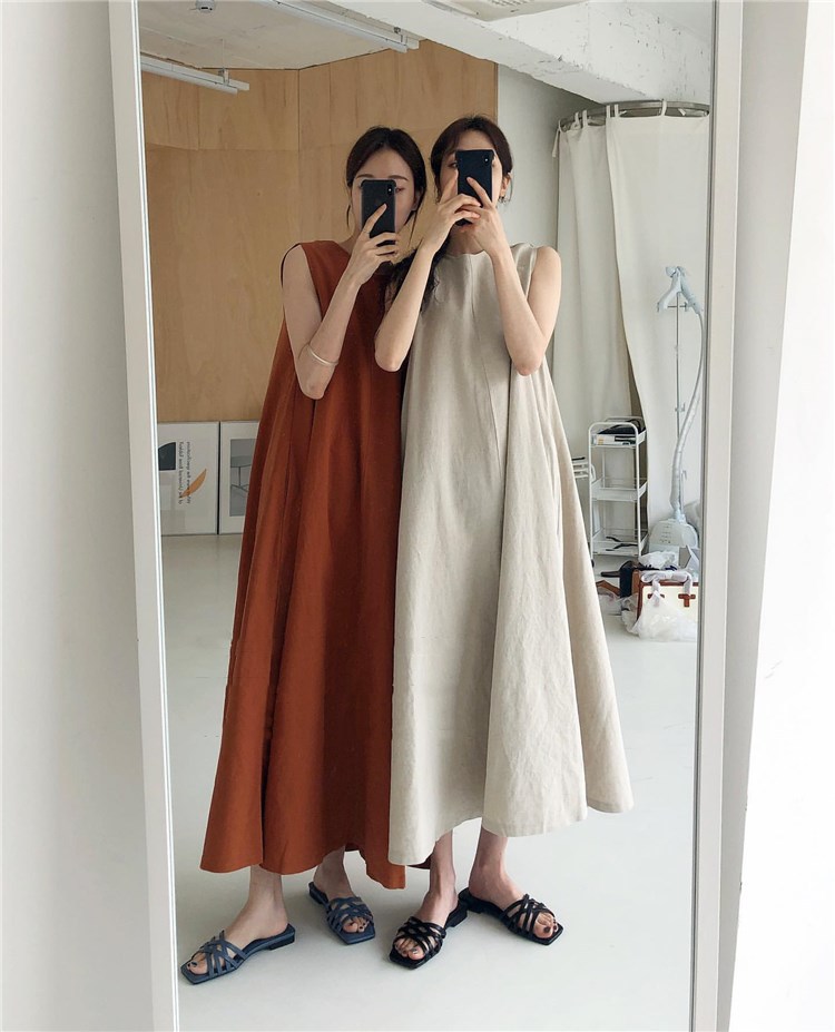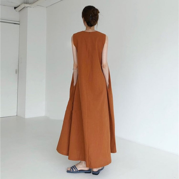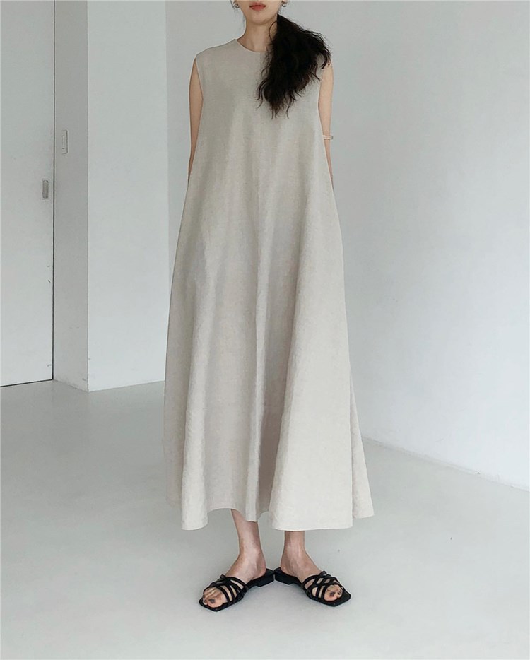 ゆったりとしたシルエットが心地よいノースリーブのワンピースです。