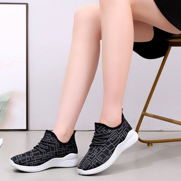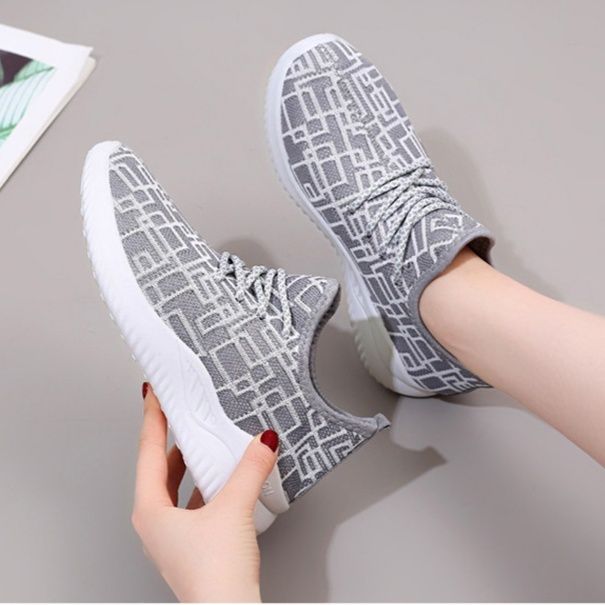 幾何学模様が全体に施された通気性の良いニット素材を使用し、足元を快適に保ちます。