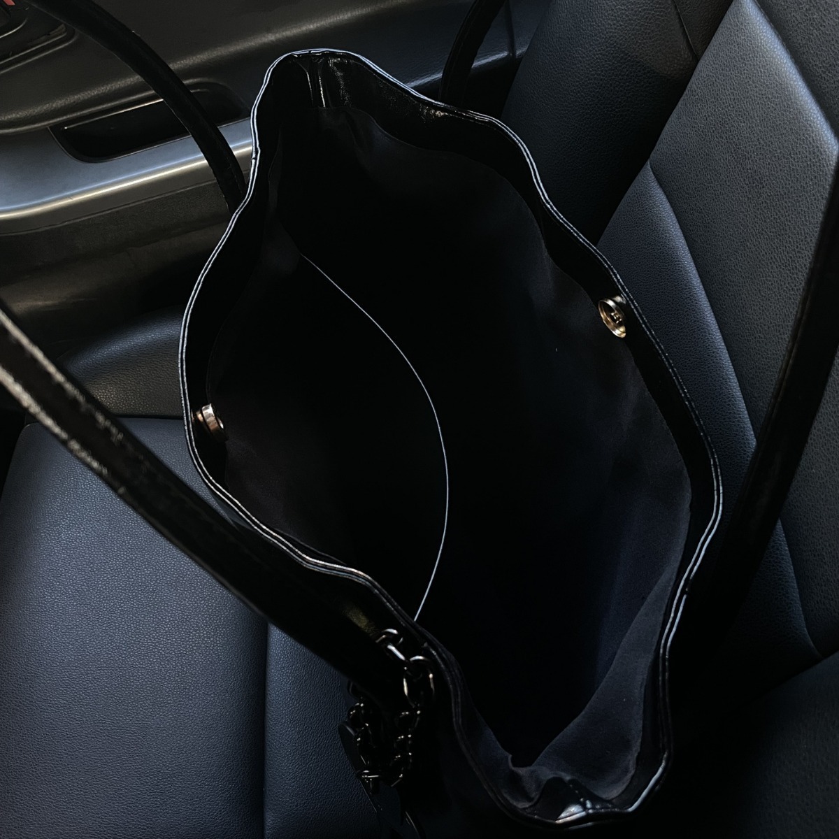 光沢のある上質なレザー調素材を使用した、大人の女性にぴったりのバッグです。