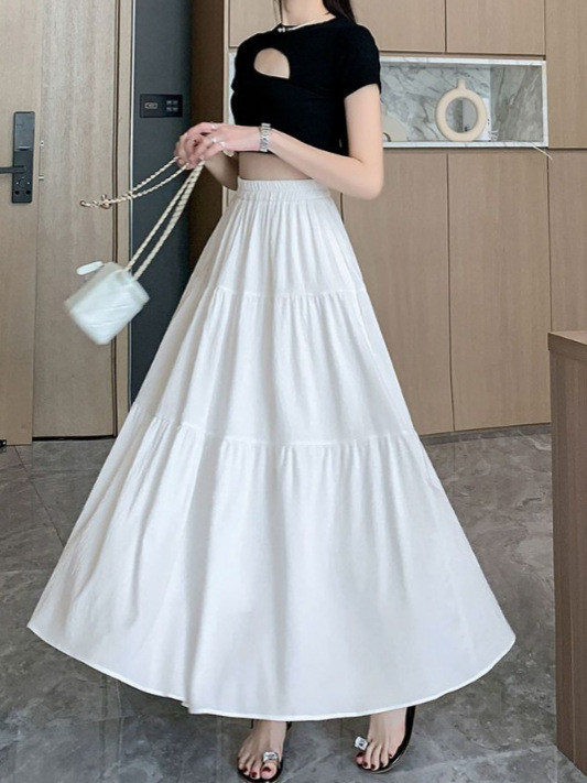 裾に向かって広がるシルエットが歩くたびに揺れて女性らしさを演出します。