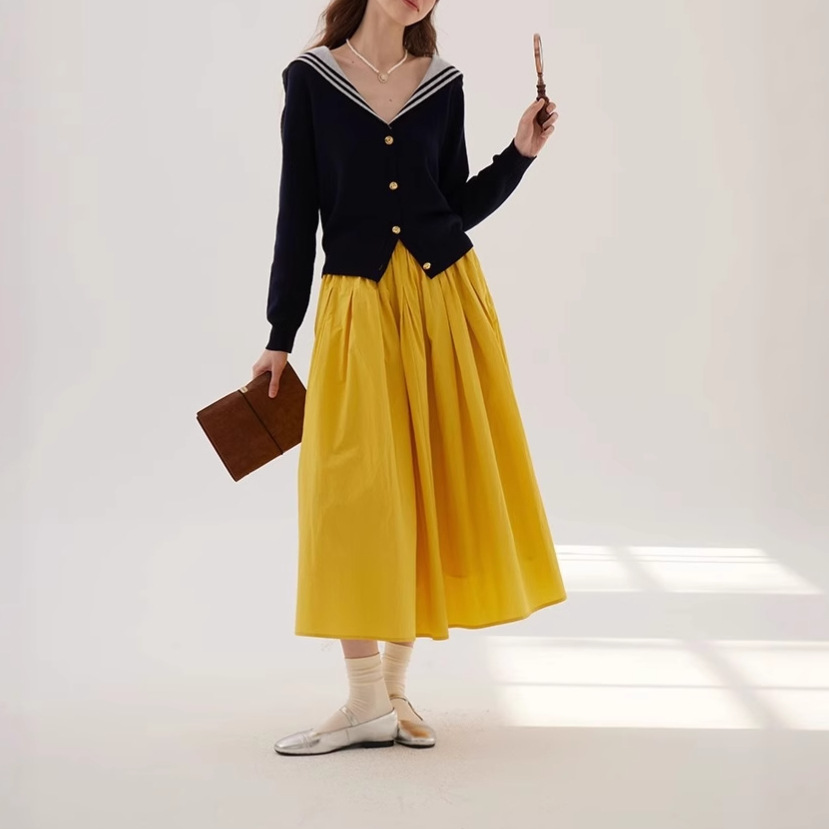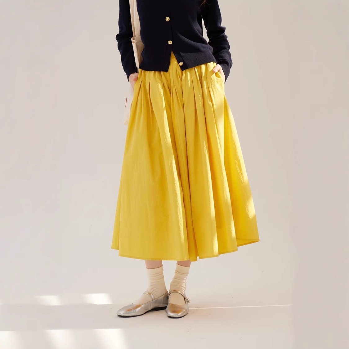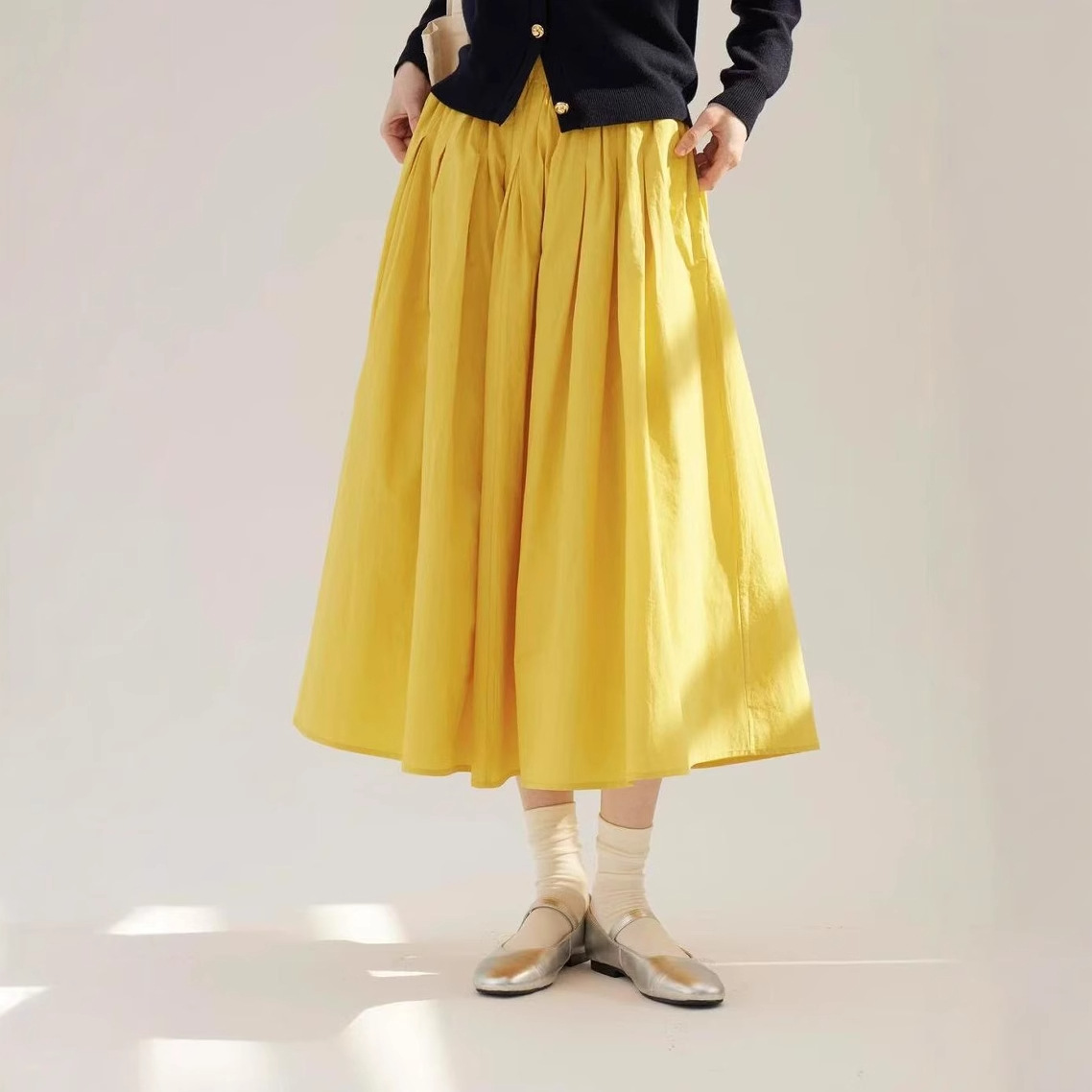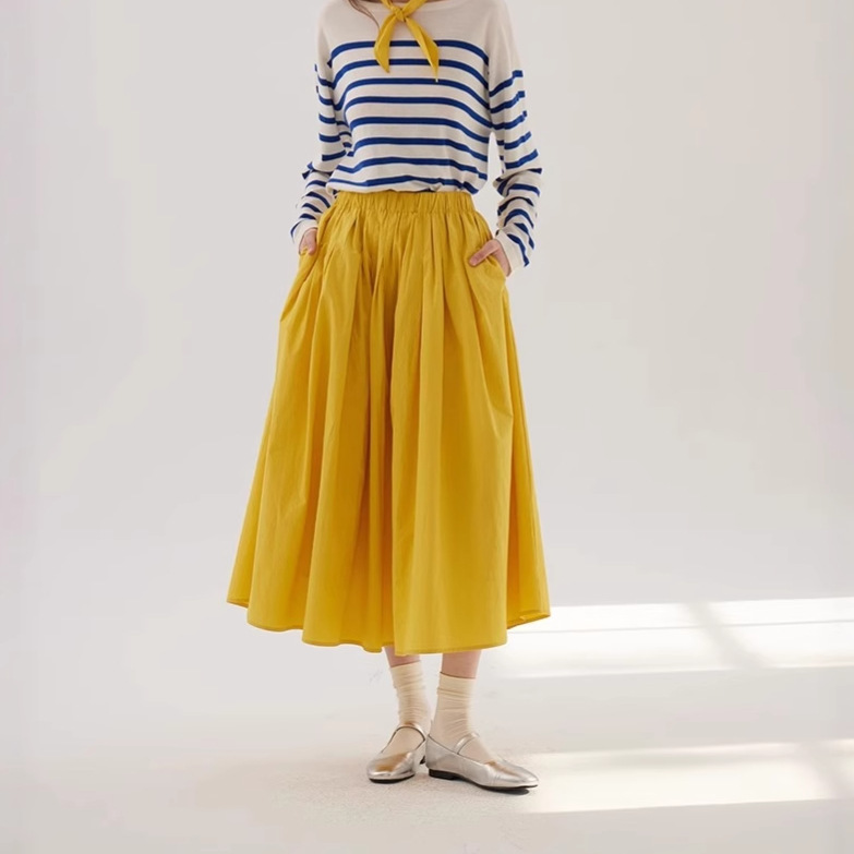 たっぷりとしたギャザーが美しく広がり、歩くたびに優雅な印象を与えます。