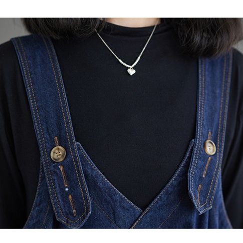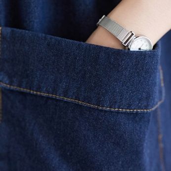大きめのポケットと金属ボタンがアクセントになり、長袖トップスと合わせることで重ね着を楽しめます。