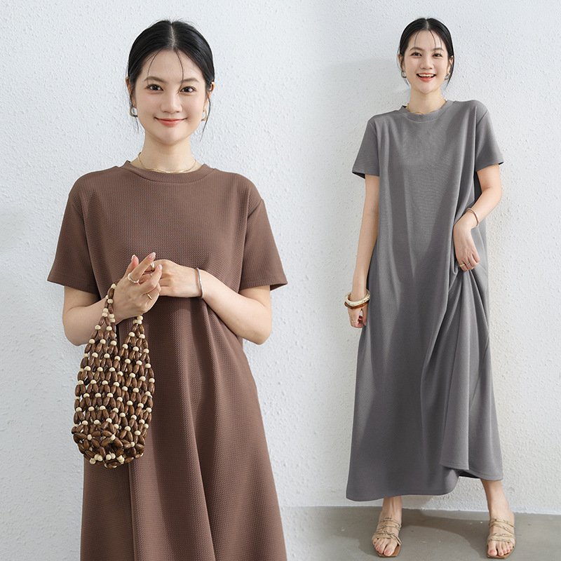 ゆったりとしたシルエットが魅力のロング丈ワンピースです。