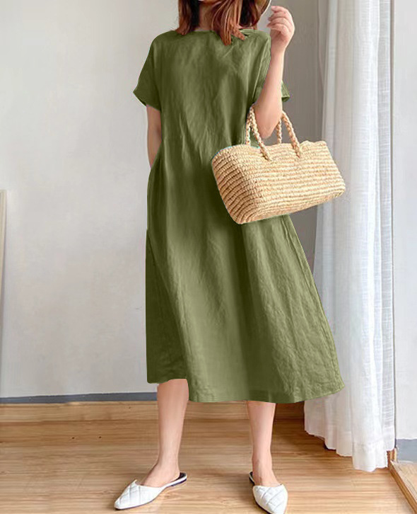 涼しげなリネン混素材を使用したゆったりシルエットのワンピースです。