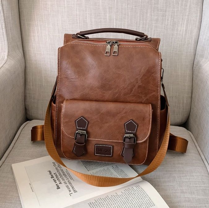 きれいめカジュアルなスタイルに合わせやすいレトロデザインのリュックです。