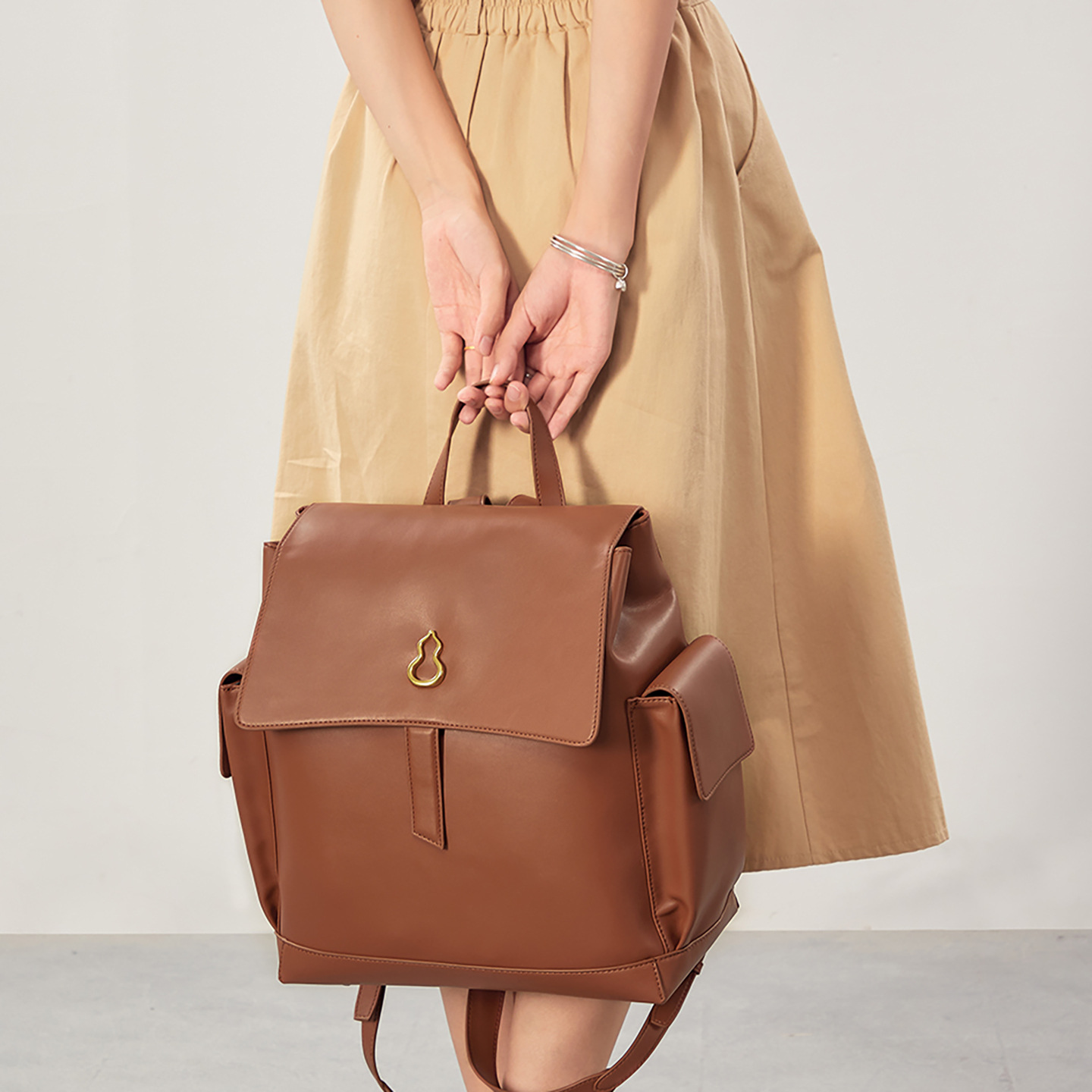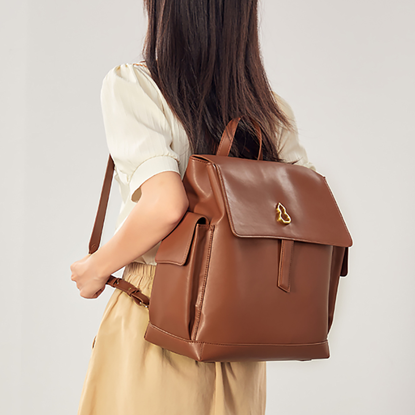 きれいめカジュアルなスタイルに合わせやすい、上品なデザインのリュックです。