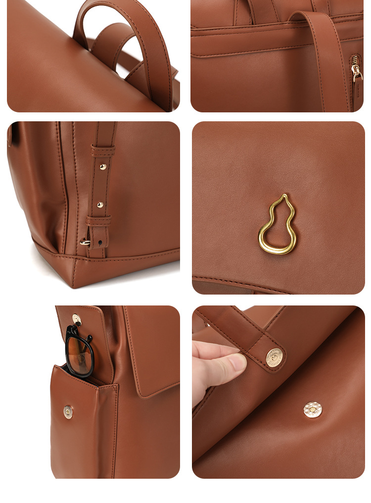 人造皮革を使用した滑らかな質感と、フラップ式の開閉部分が大人の雰囲気を演出します。