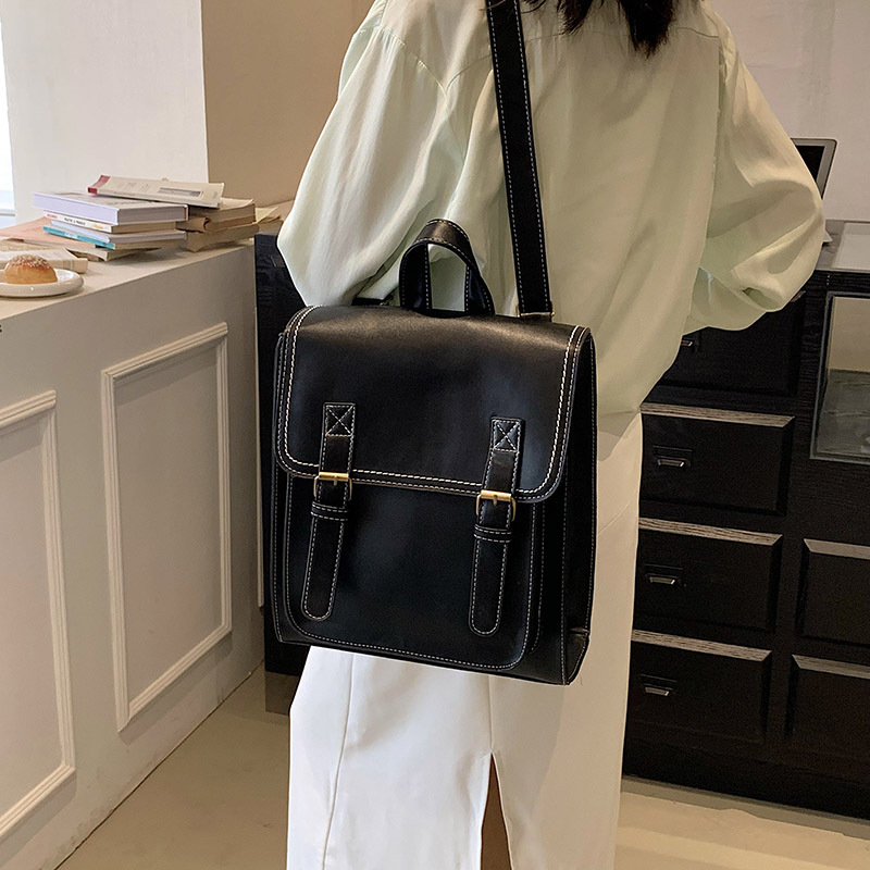 フロントのダブルバックルデザインが洗練された印象を与え、通勤通学からお出かけまで幅広く活躍します。