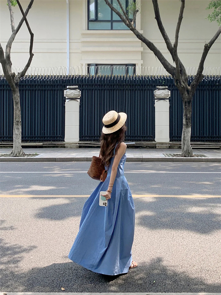 麦わら帽子や編み込みバッグと合わせて、洗練された休日スタイルが完成します。