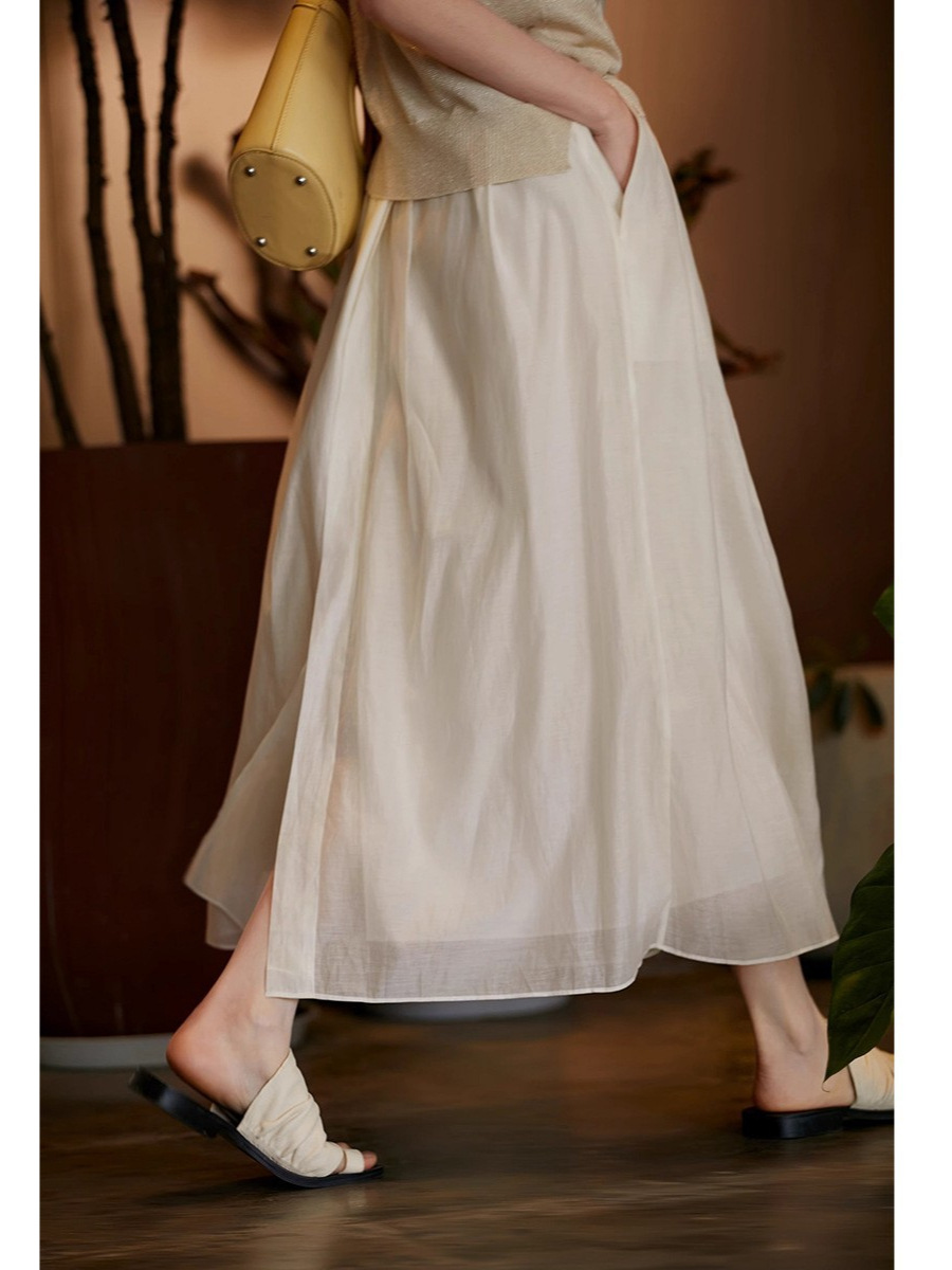 軽やかな生地感で春夏はもちろん、秋冬のレイヤードスタイルにも活躍するスカートです。