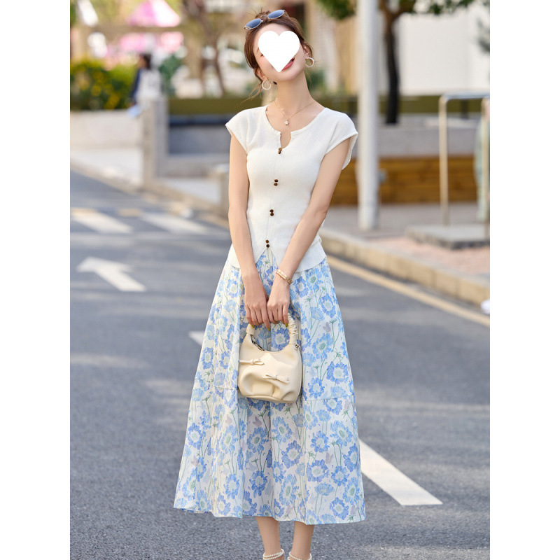 繊細な花柄が美しいシフォン素材のミディ丈スカートです。