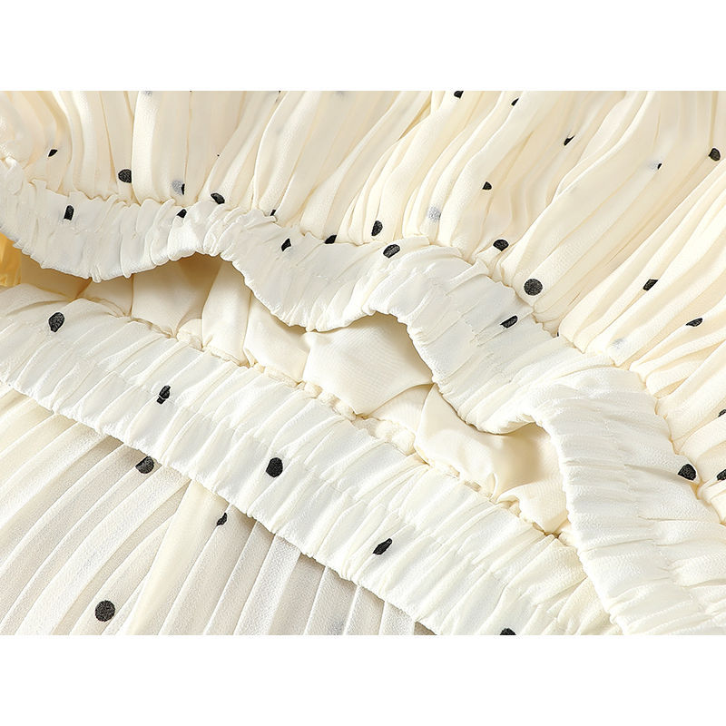 揺れるたびに輝くプリーツが女性らしさを引き立て、オフィスからお出かけまで幅広いシーンで活躍します。