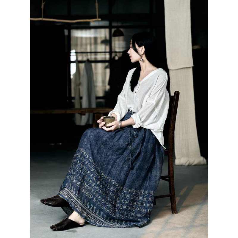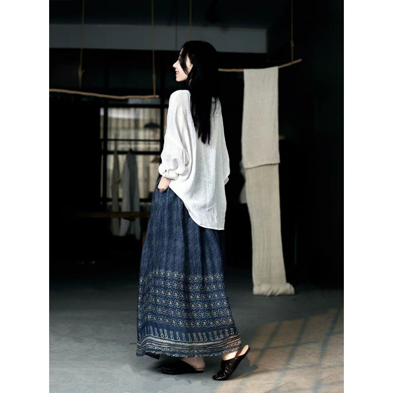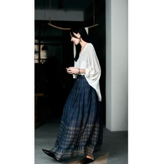 エスニック調の裾刺繍が印象的なロング丈のスカートです。