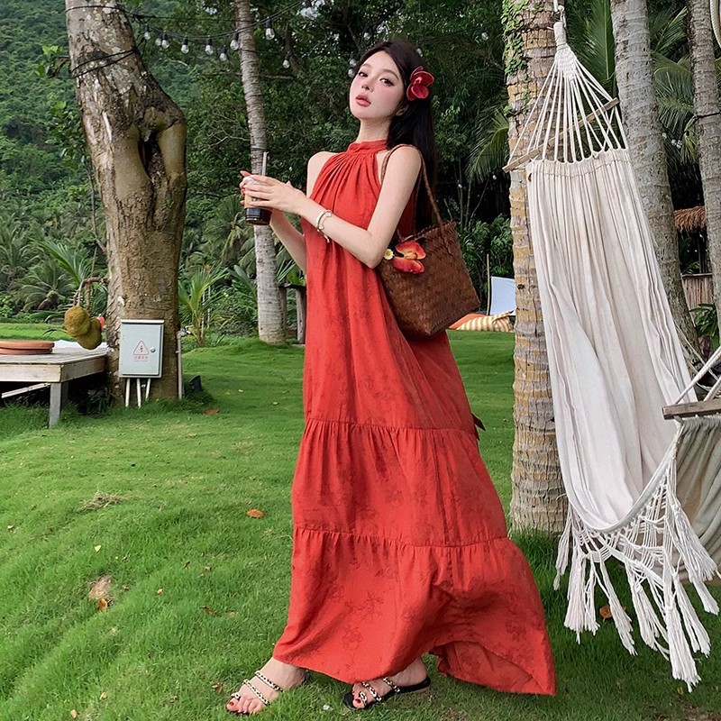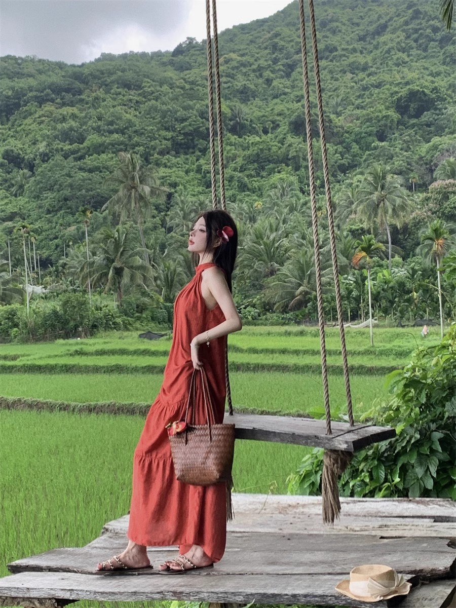 ティアード切替でふんわりと広がるシルエットが、リゾートシーンから日常まで幅広く活躍します。