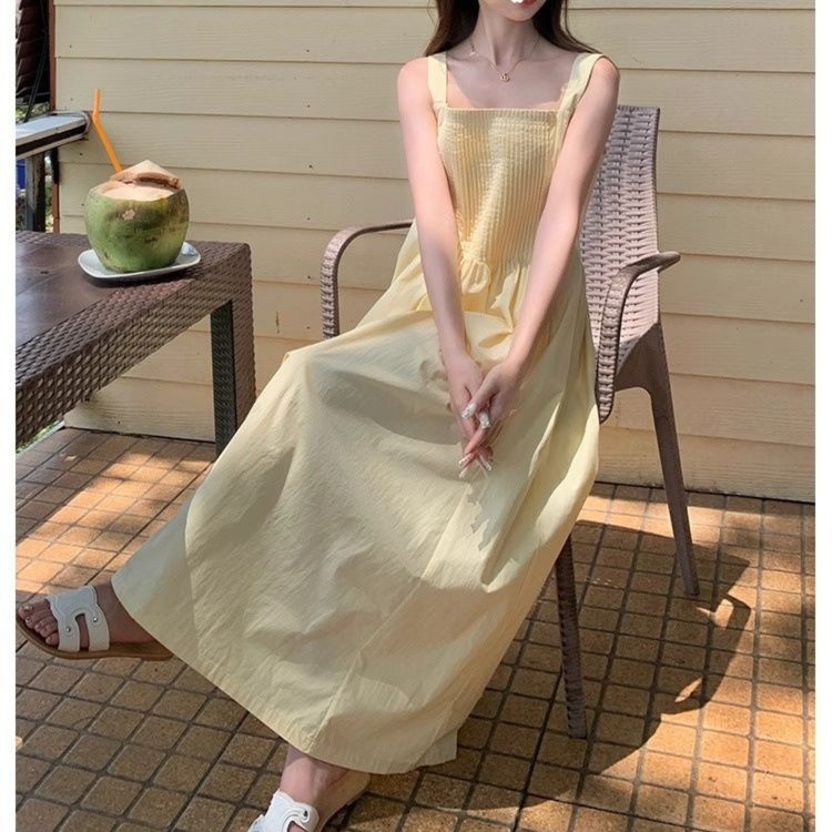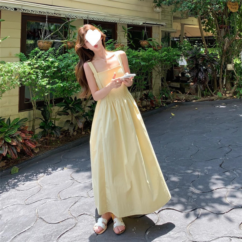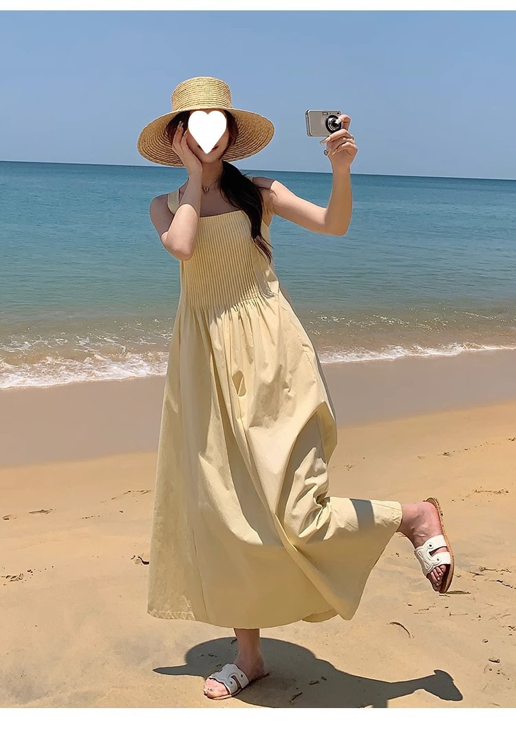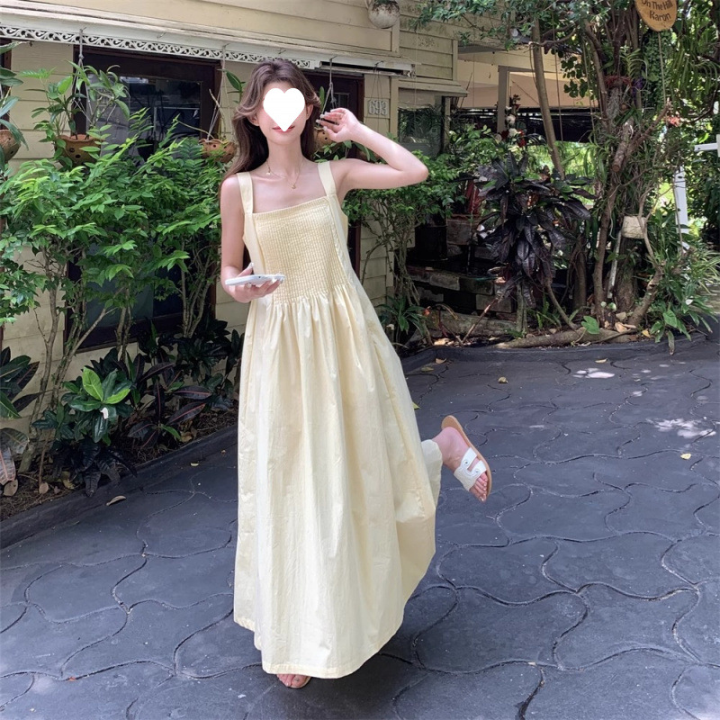 胸元のシャーリングデザインが女性らしさを引き立てるキャミソールワンピースです。