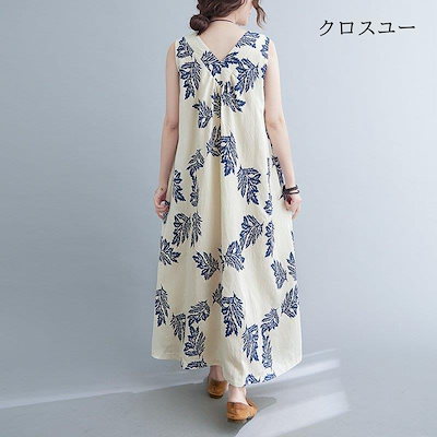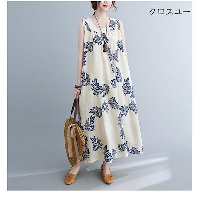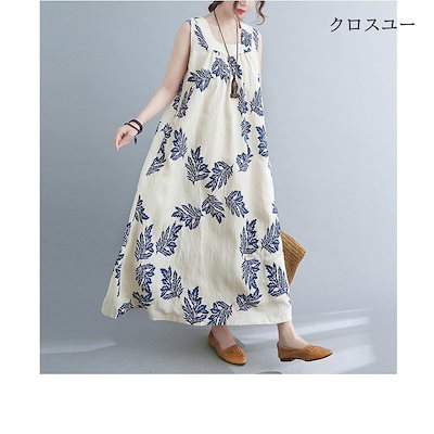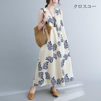 夏にぴったりの涼しげな綿麻素材を使用したノースリーブワンピース。