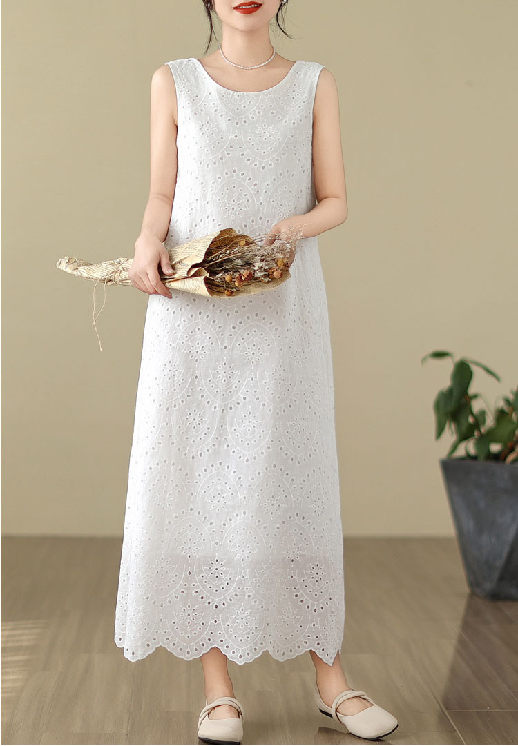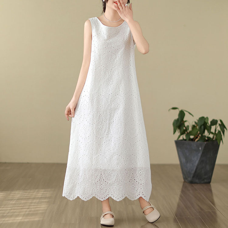 繊細なレース刺繍が美しいマキシ丈ワンピース。