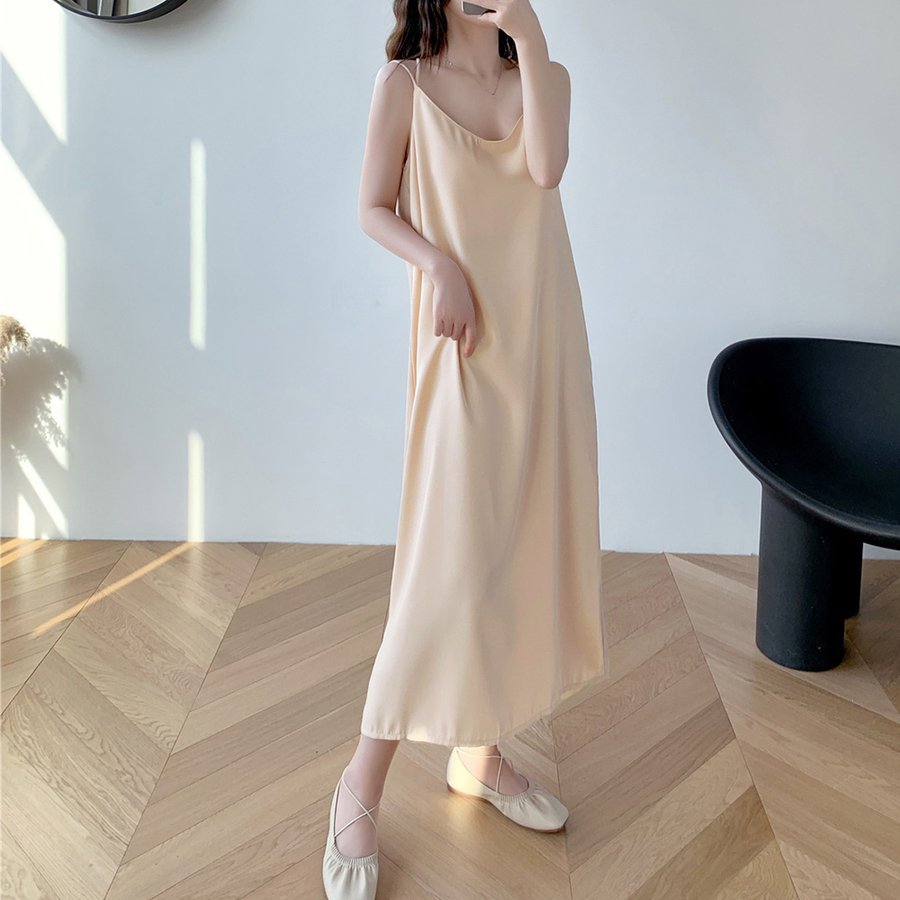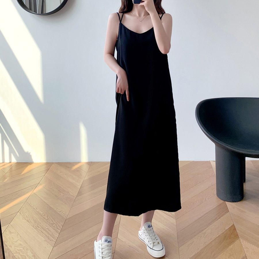 背中の交差デザインがおしゃれなアクセントのキャミソールワンピース。