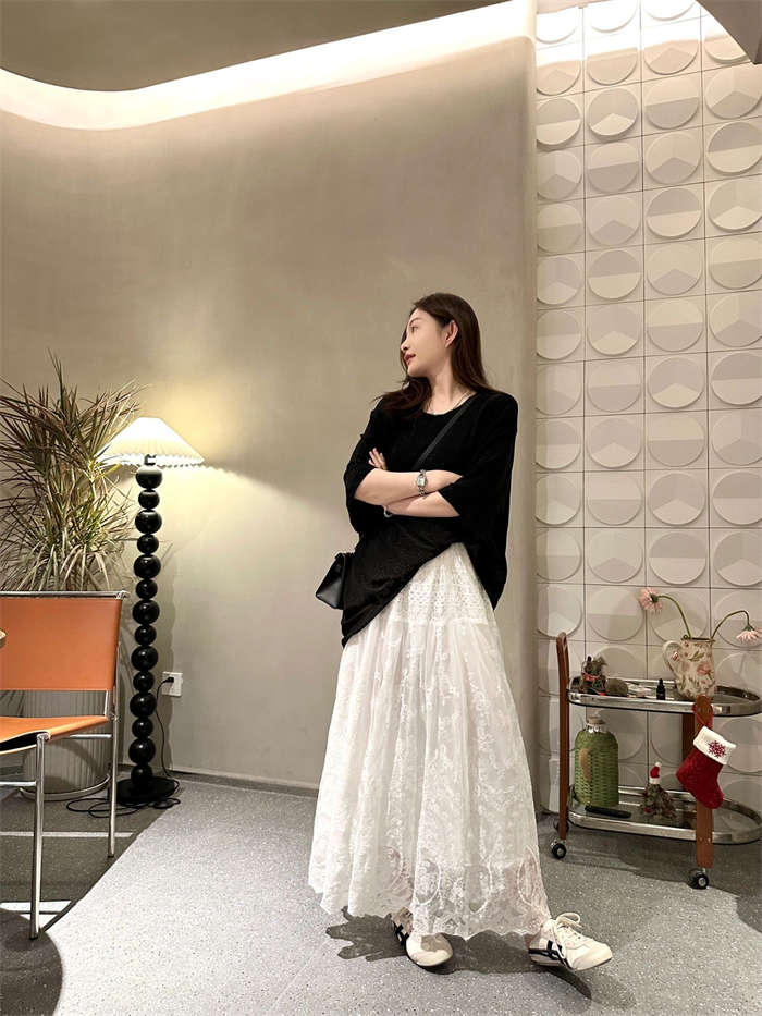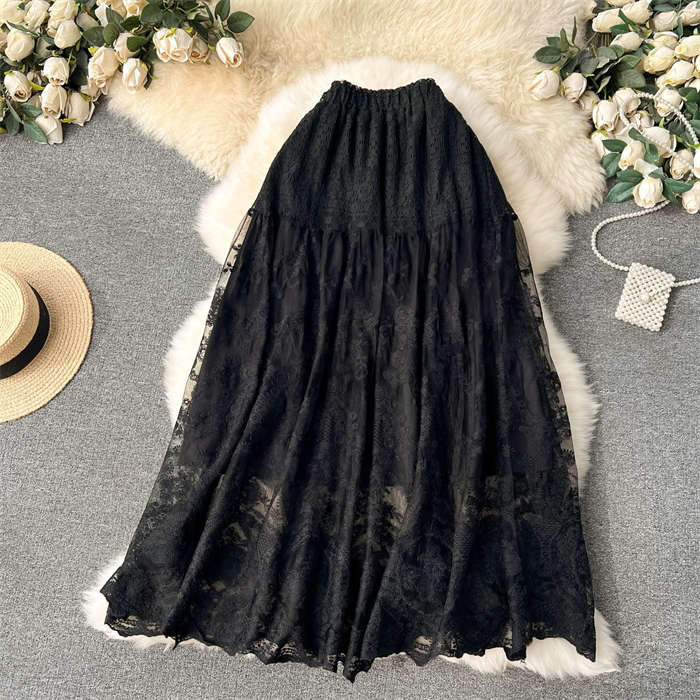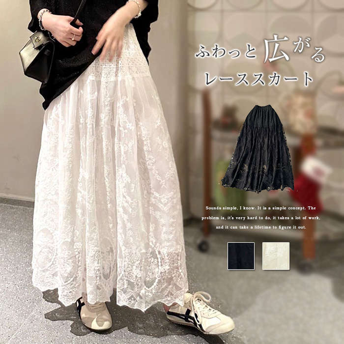繊細な総レース素材が美しいロング丈スカートです。