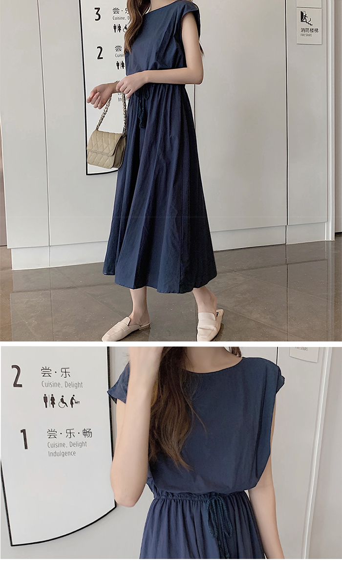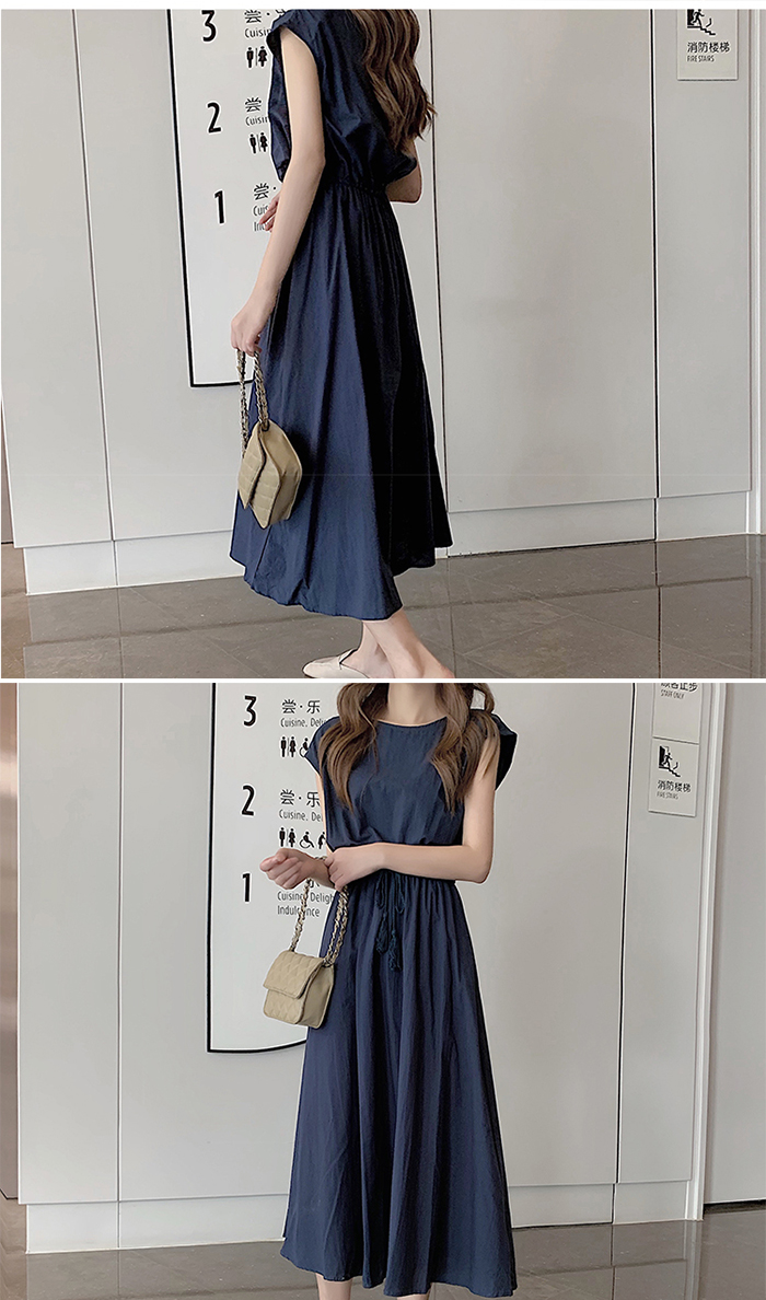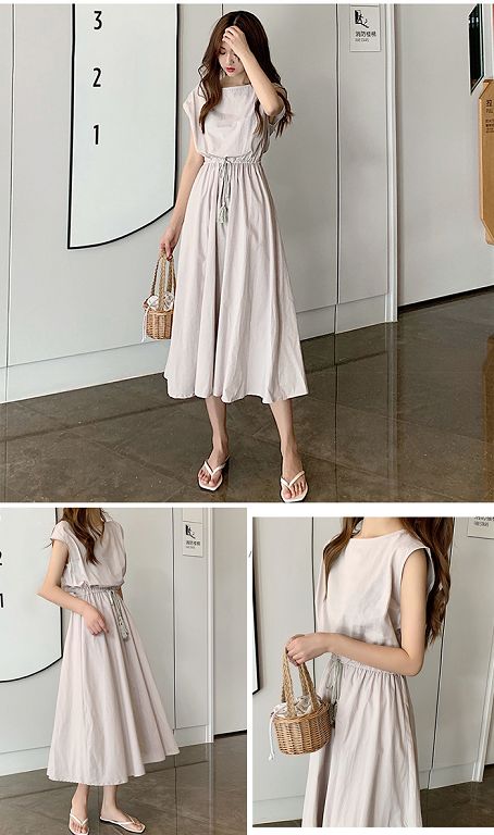 ベージュとネイビーの上品な2色展開で、どんなシーンにも馴染むワンピースです。