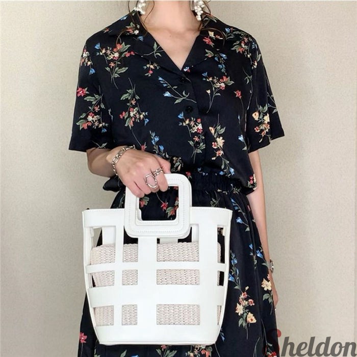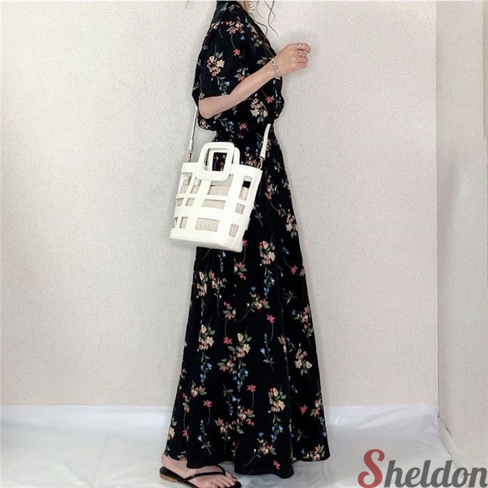 黒地に散りばめられた小花模様がきれいめカジュアルなスタイルを演出します。