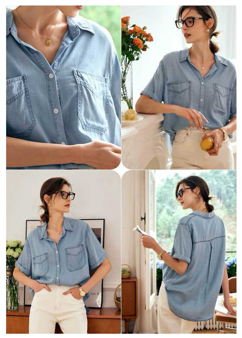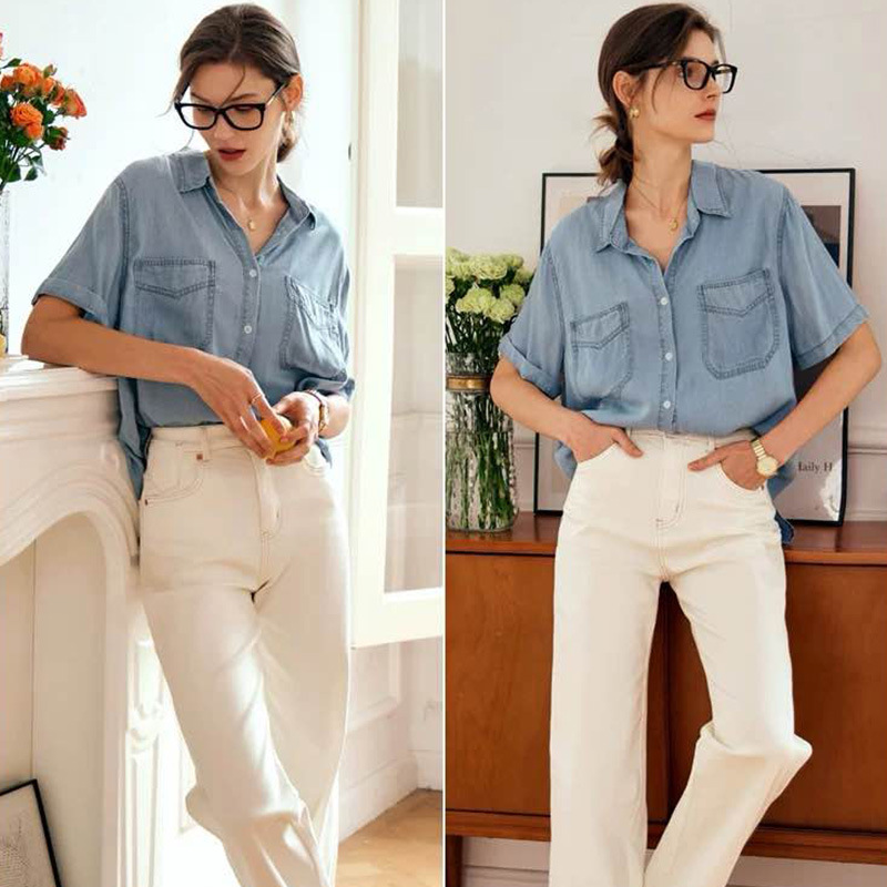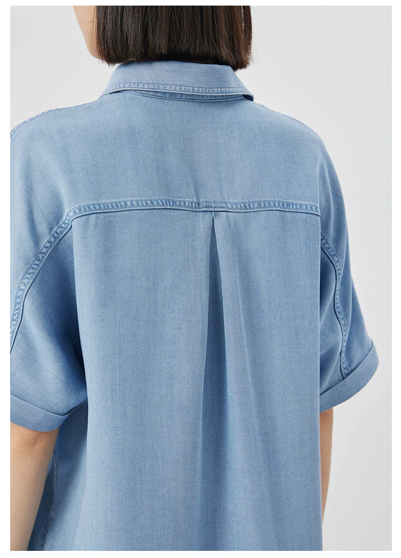 柔らかなデニム素材を使用し、一枚でさらりと着こなせるのが魅力です。