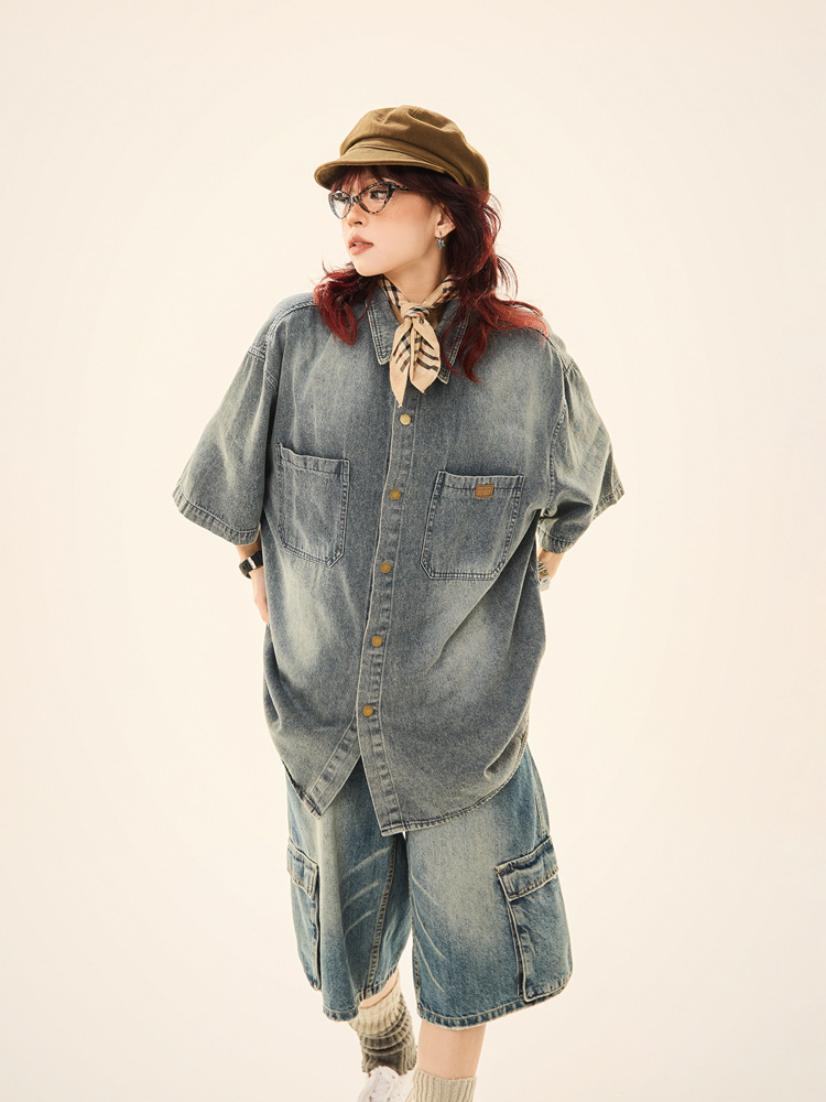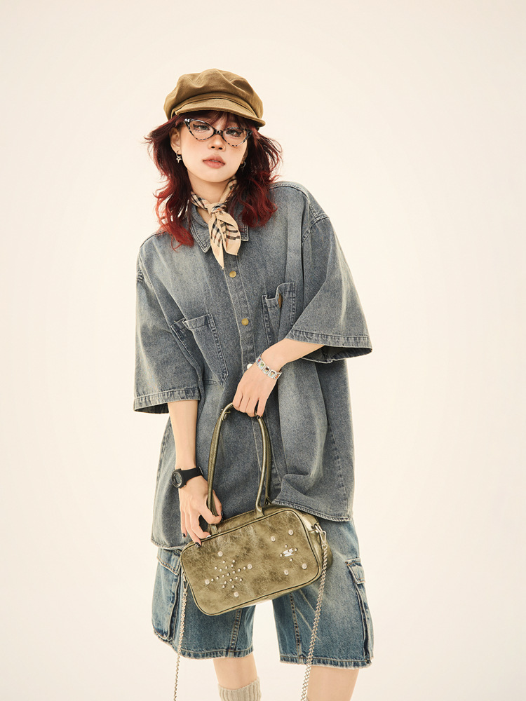 程よいヴィンテージ加工が施されたデニム生地で、こなれた雰囲気を演出できる一枚です。