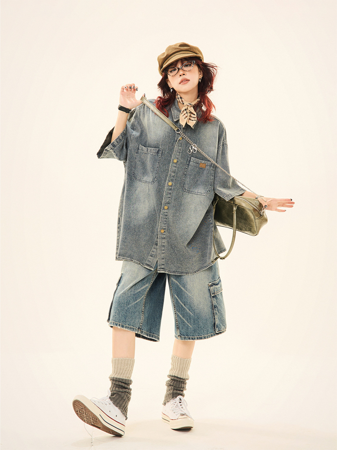 膝上丈のショート丈で足元を軽やかに見せながら、サイドの立体的なカーゴポケットがアクセントになっています。